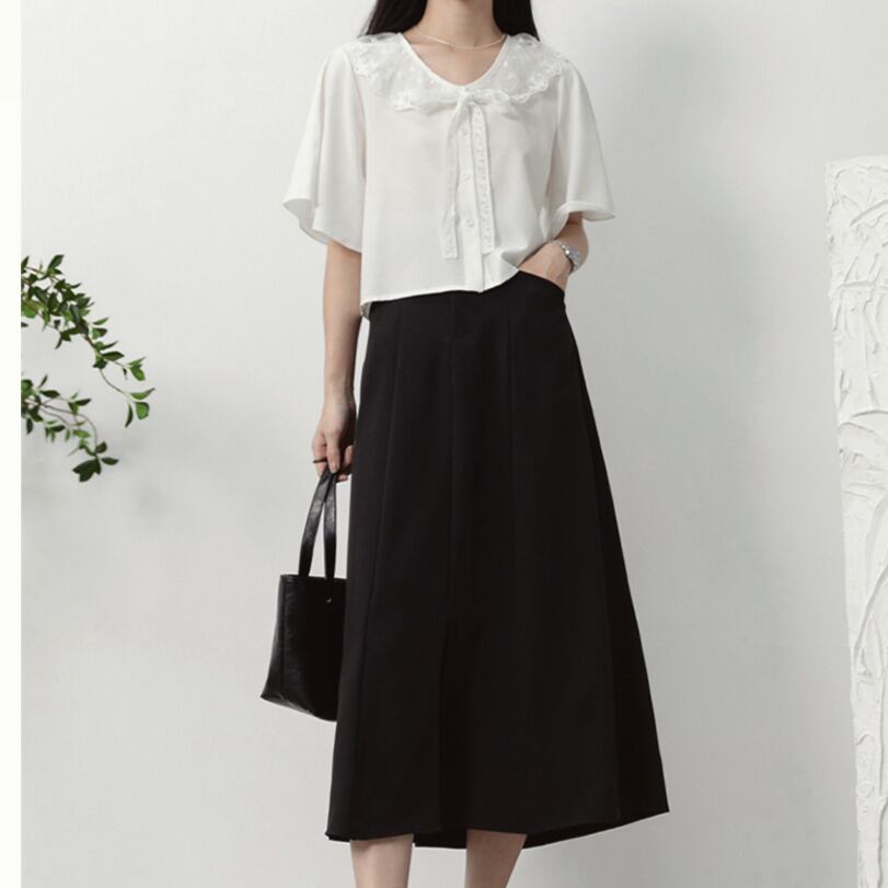 繊細なレース襟と可愛らしいボウタイがポイントのブラウスです。