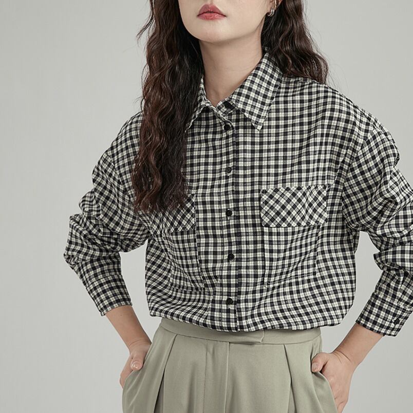 定番のギンガムチェック柄が魅力の長袖ボタンダウンシャツ。