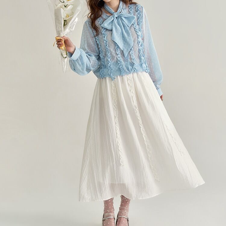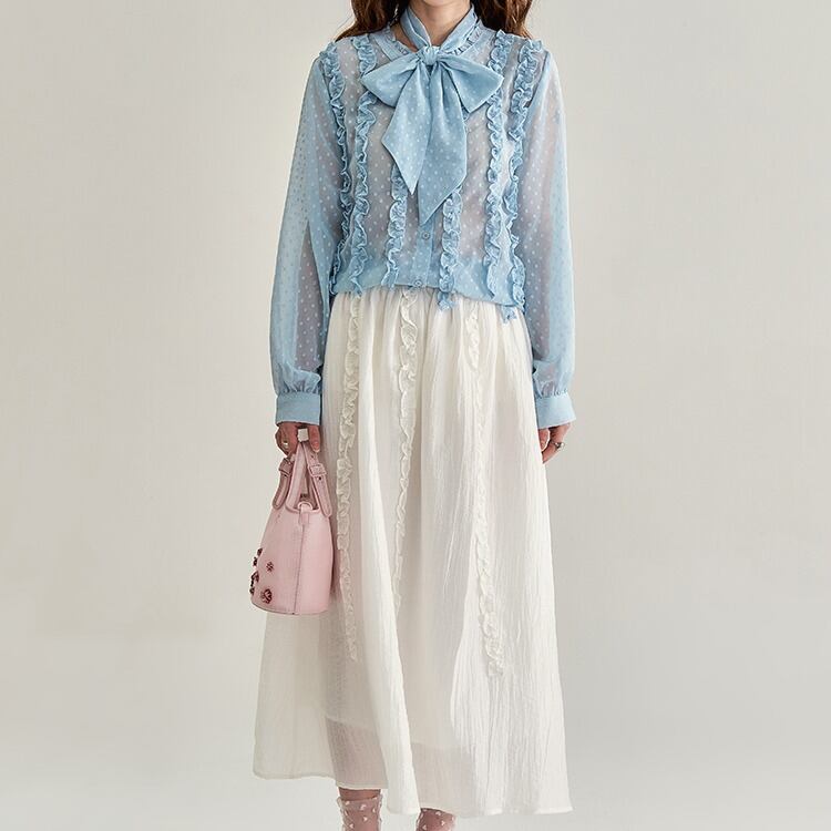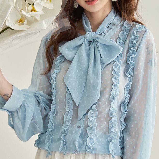 フリルデザイン シフォンボウタイブラウス 00240
