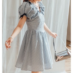 ギンガムチェック 2wayショルダー リボンデザインミニ丈ワンピース 00245