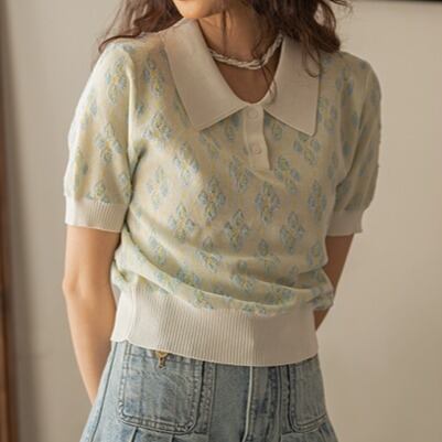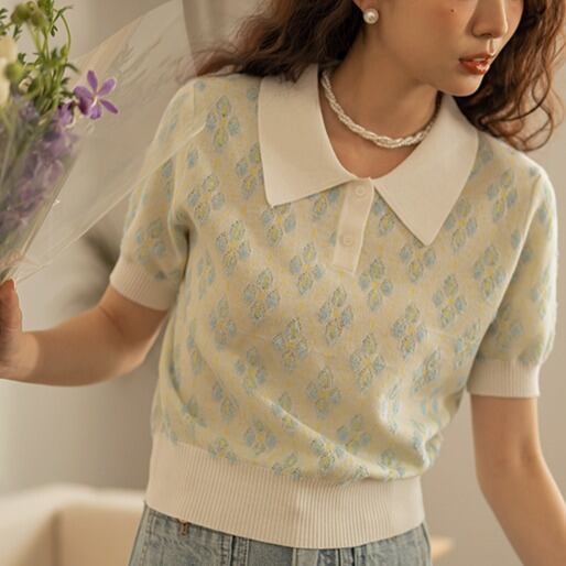 ショートスリーブ クロップド丈ポロカラーニット 00252