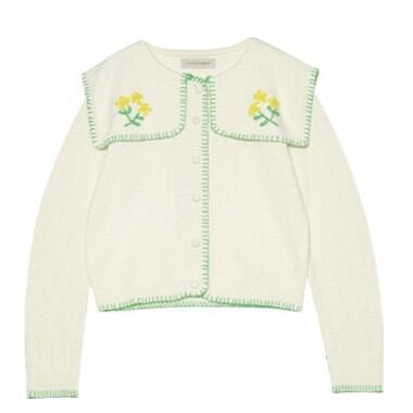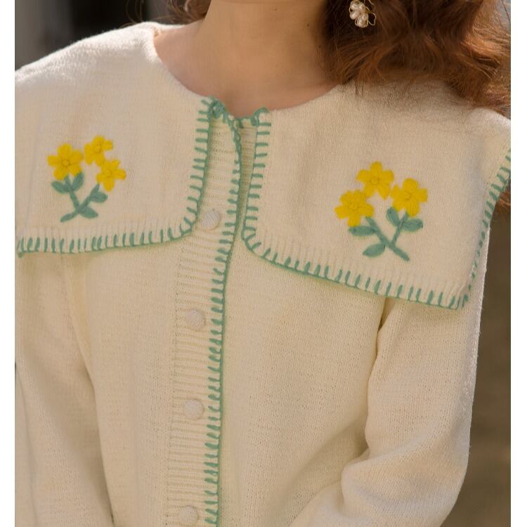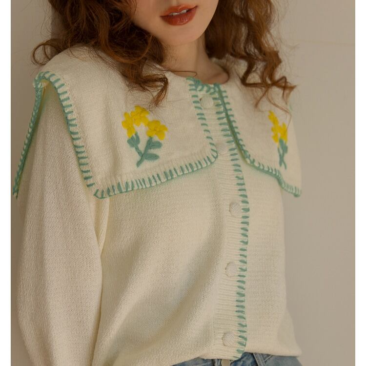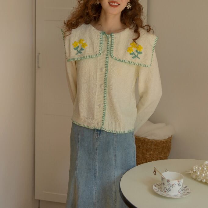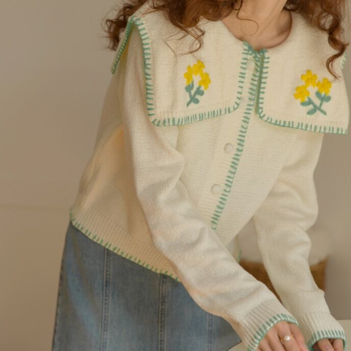 花柄刺繍 ラインステッチ ビックカラー カーディガン 00259