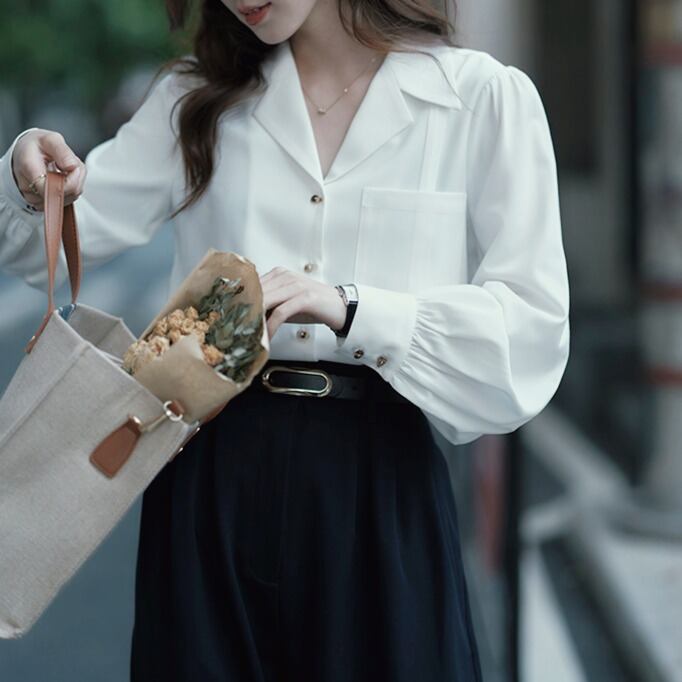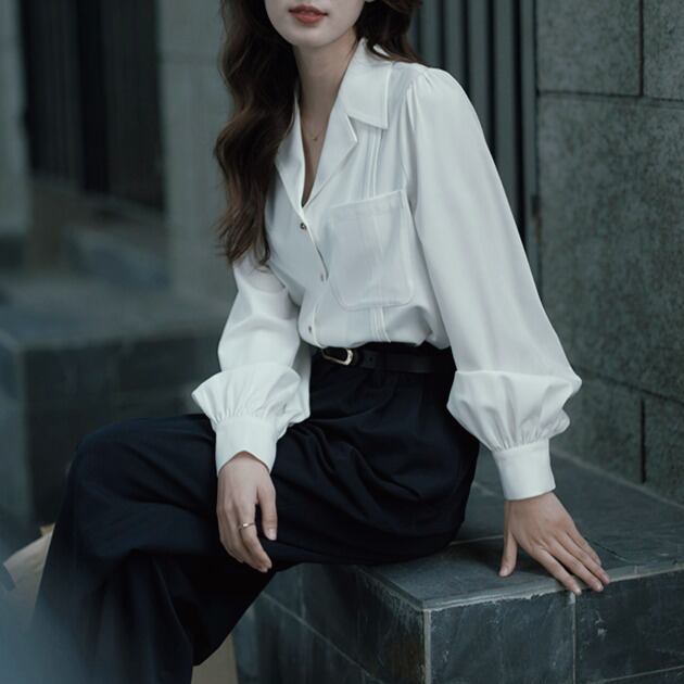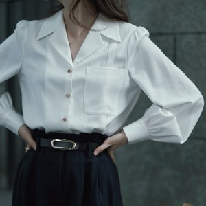フロントポケット付き Vネック ロングスリーブブラウス 00115