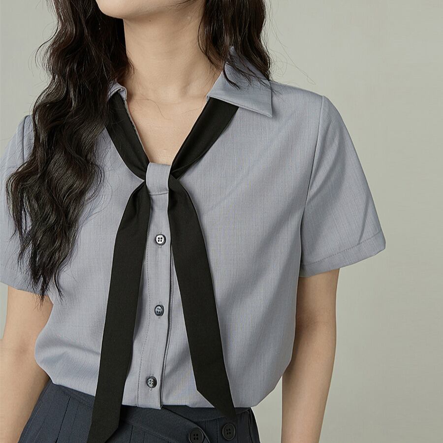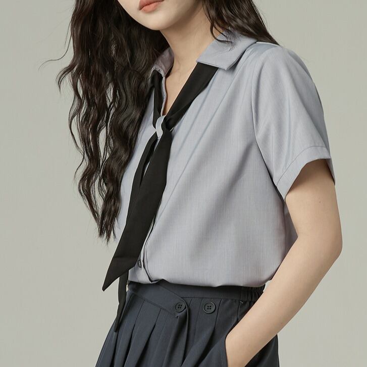 ボウタイデザイン ハーフスリーブブラウス 00108