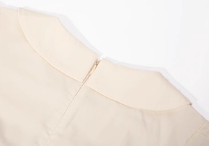 胸元とサイドに軽くあしらわれたステッチやプリーツ風のデザインが上品さをプラス。