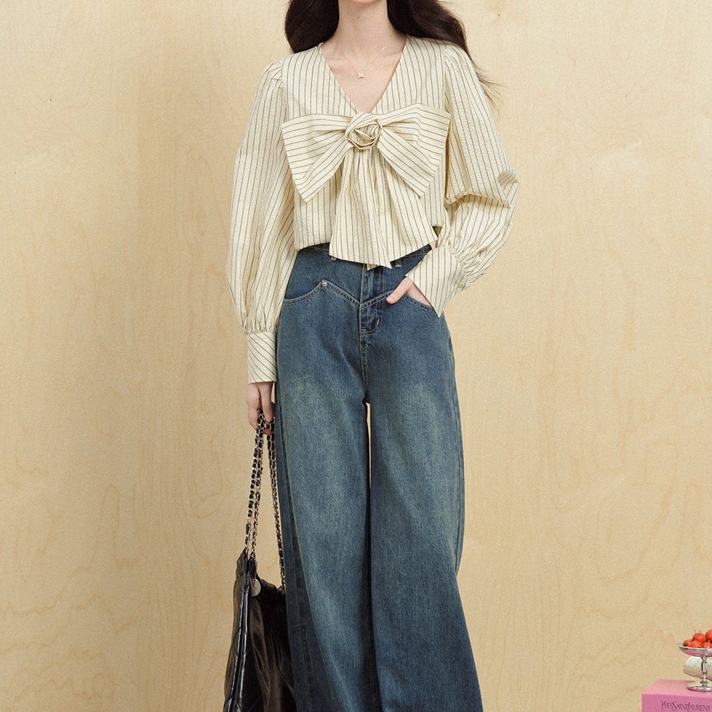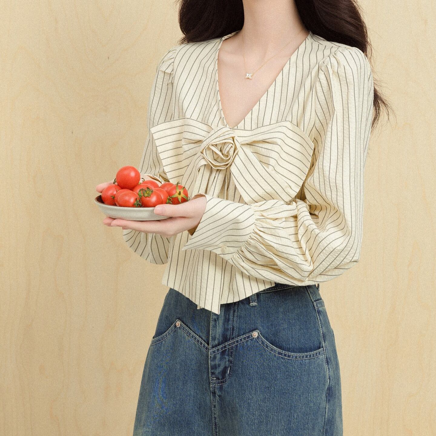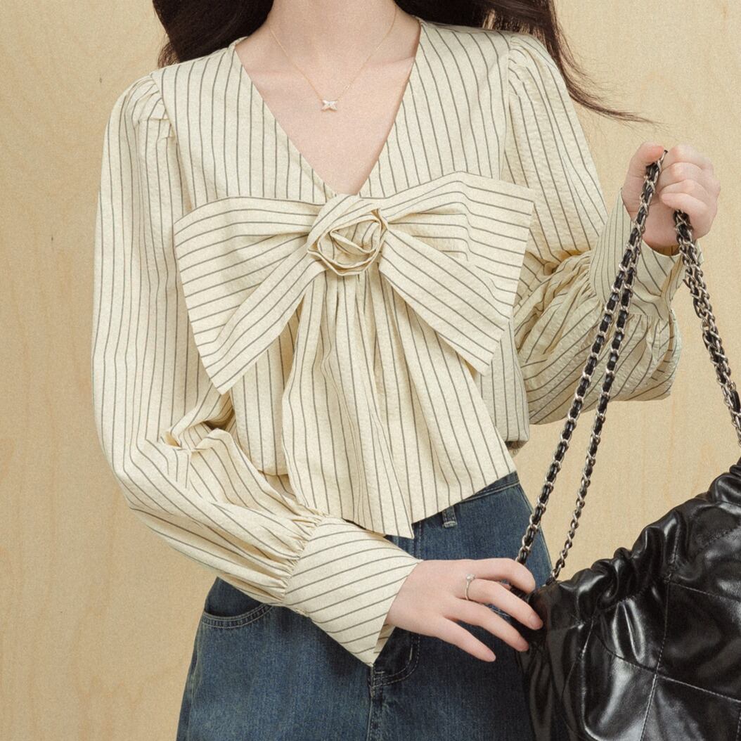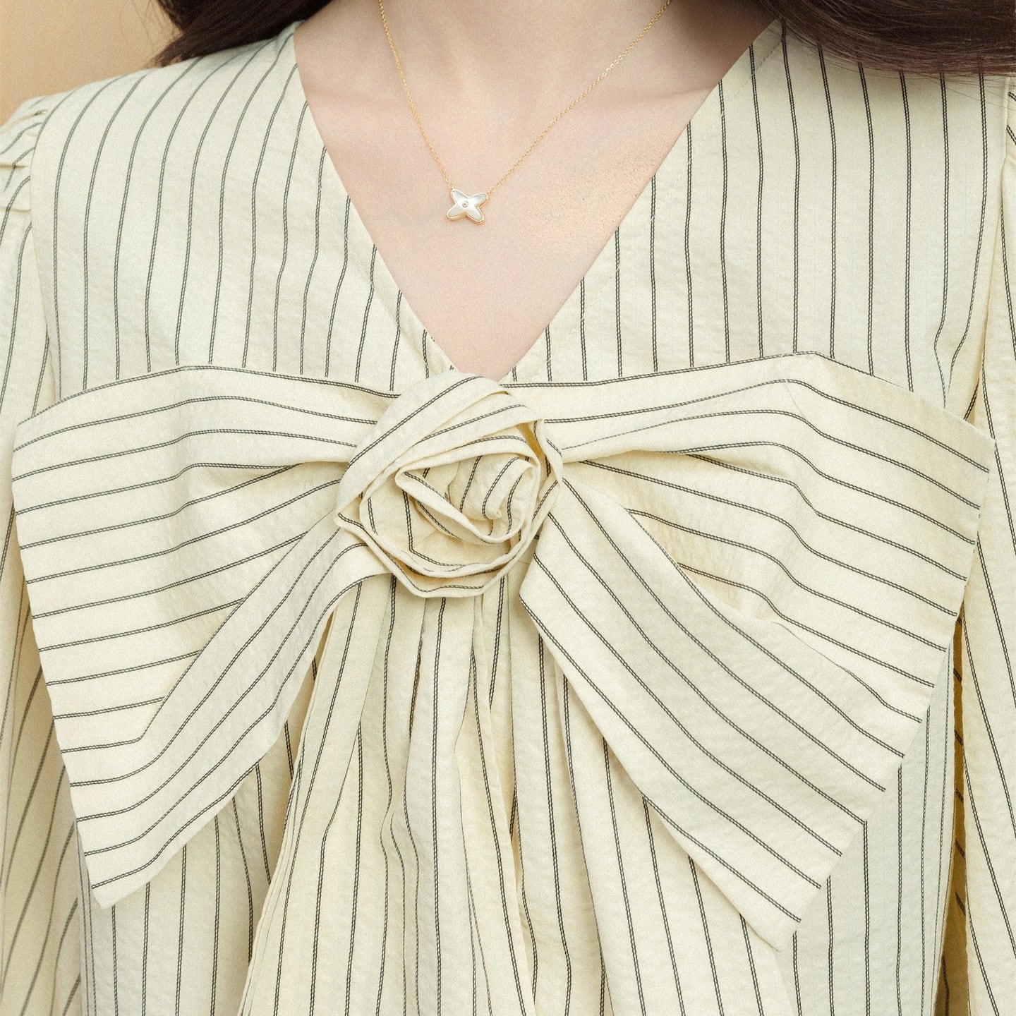 ローズリボンタイ ストライプ ロングスリーブブラウス 00216
