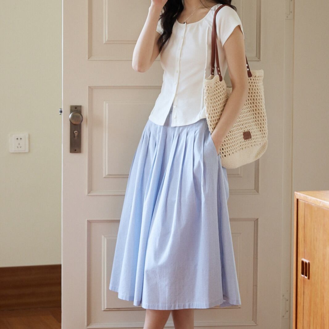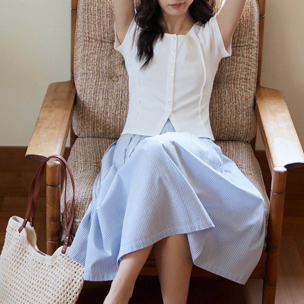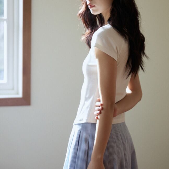 フロントボタン ラウンドネック 半袖Tシャツ 00304
