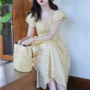 パフスリーブ Aライン ミディ丈ワンピース 00316