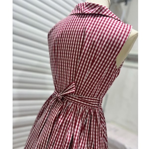 ウエストリボン付き ギンガムチェック ノースリーブ Aラインワンピース 00390