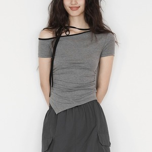 タイネック アシメトリーヘム ショートスリーブ トップス 00362