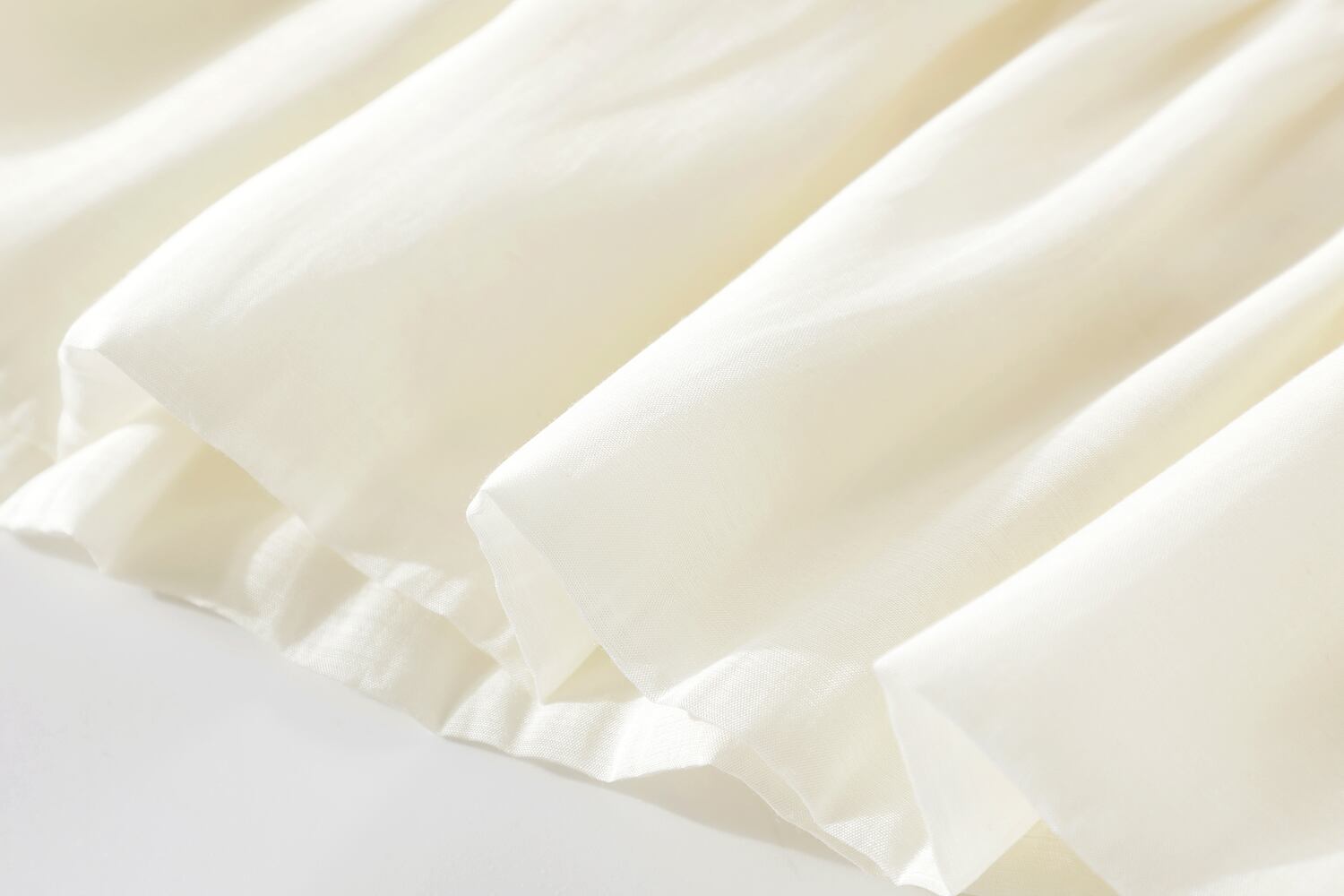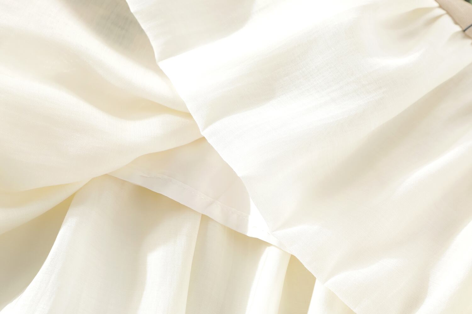 ネックのリボンがアクセントになり、甘すぎない大人の可愛らしさを演出します。