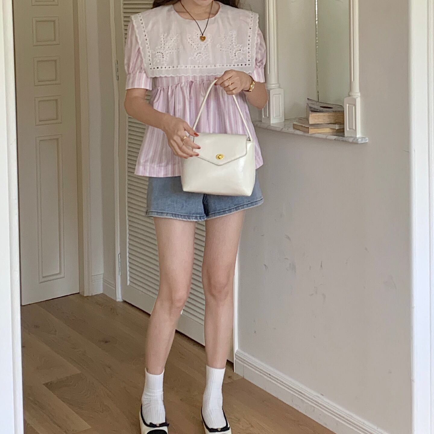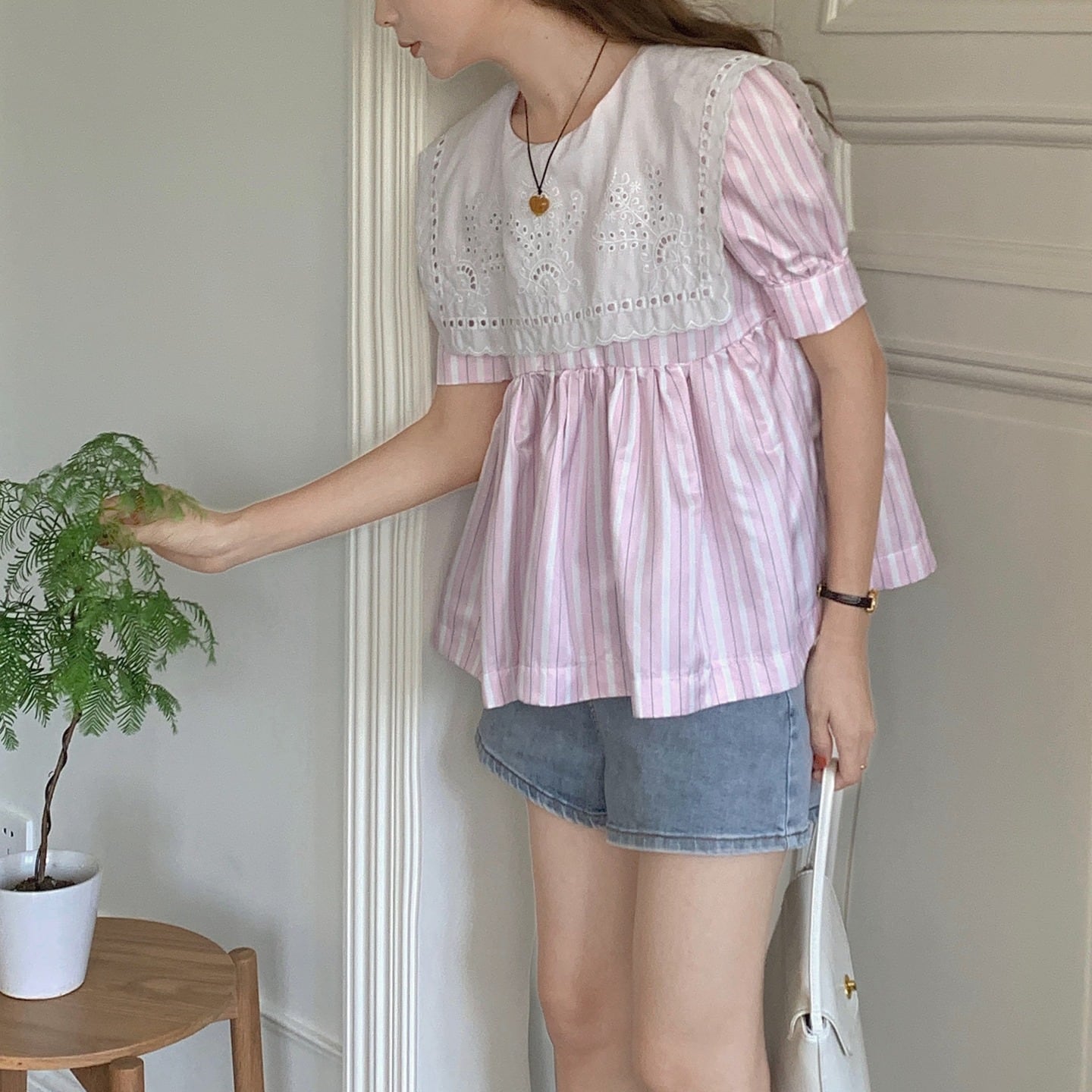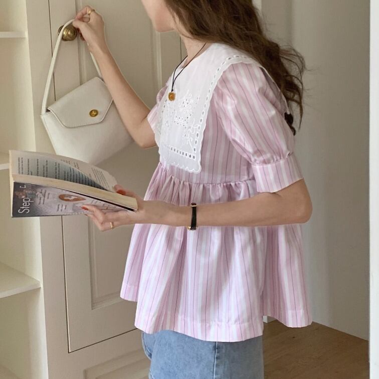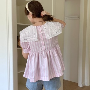 ストライプ柄 セーラーカラー ペプラムブラウス 00430