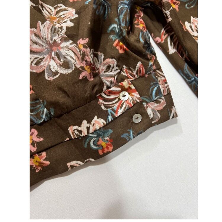 モダンフラワー柄 ウエストマーク Vネックブラウス 00434
