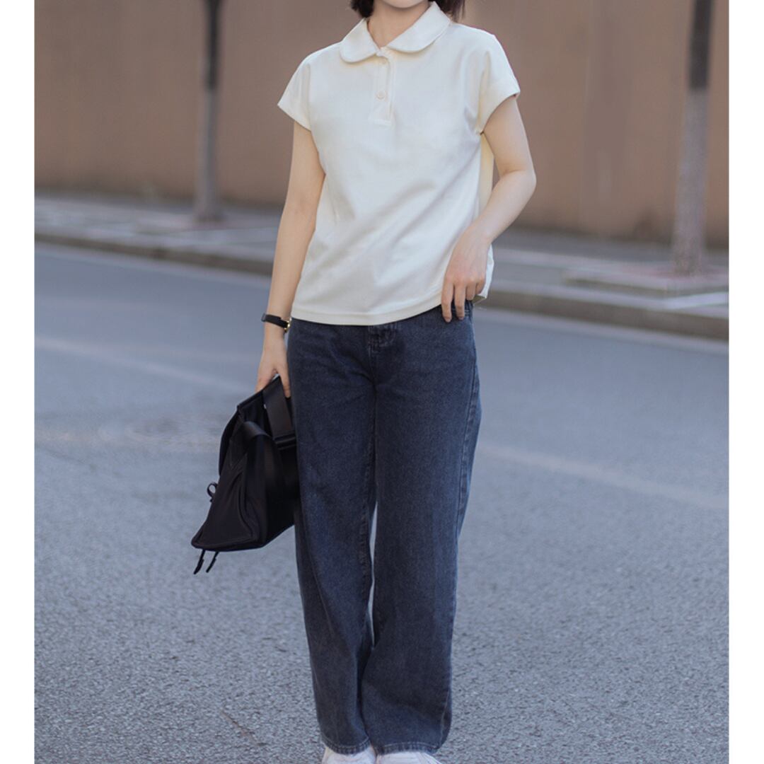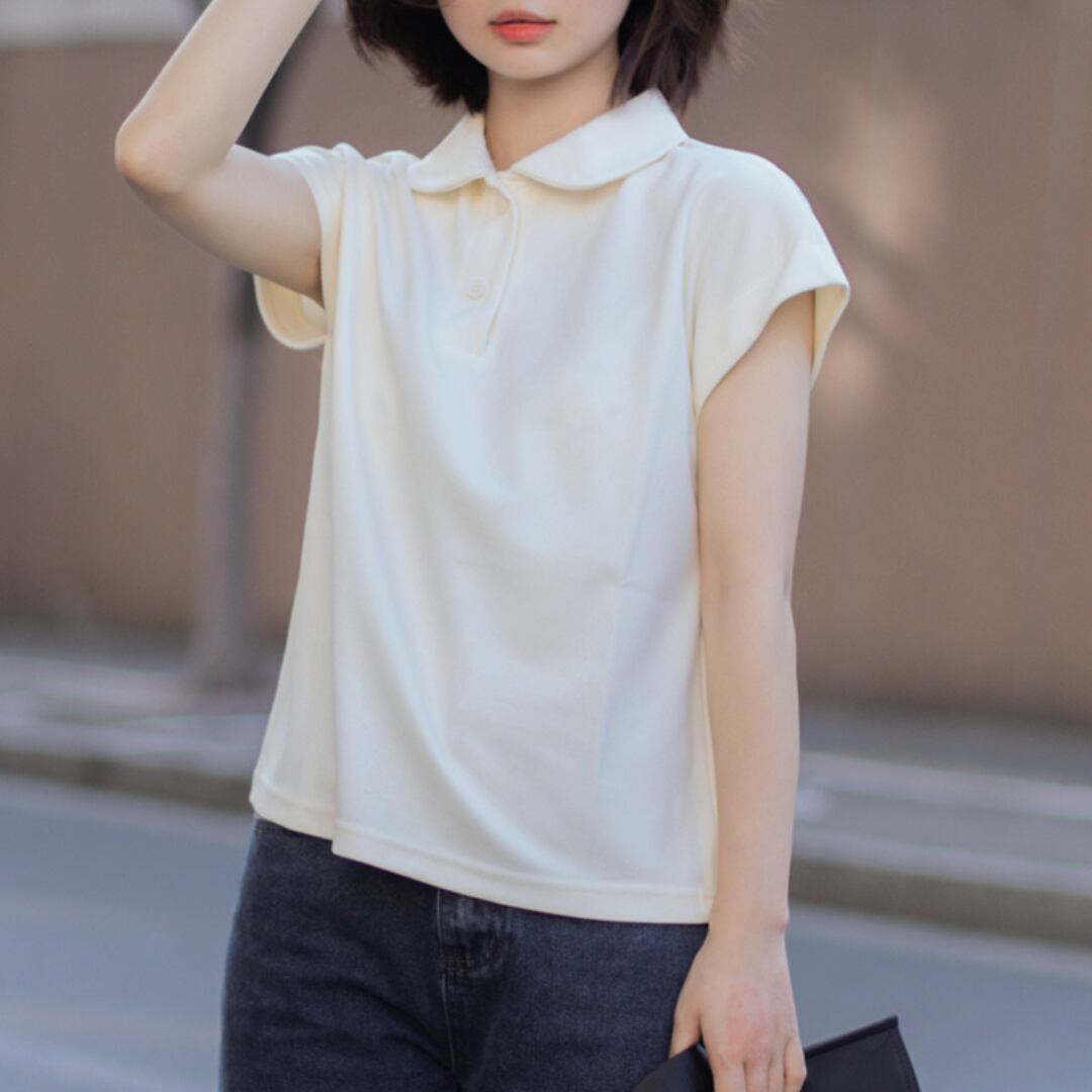 上品なポロ襟とハーフスリーブが魅力のトップスです。