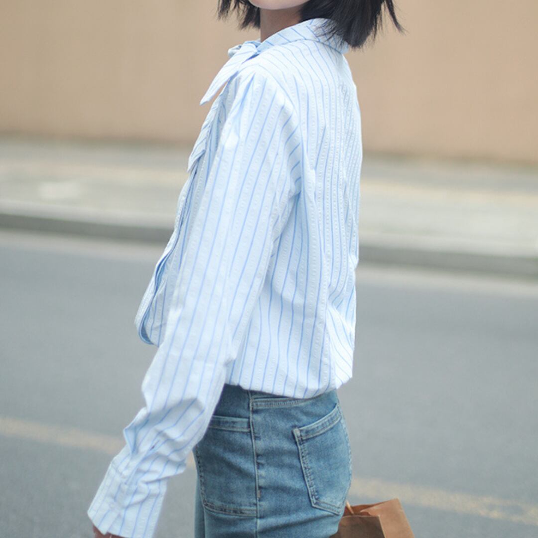 ストライプ柄が、着こなしに程よいアクセントを加えます。
