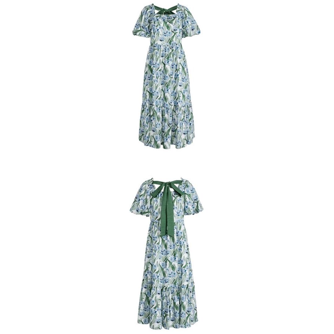 【L】 胸囲:97cm / ウエスト:82cm / 袖丈:29cm / スカート丈:119.5cm / 裾まわり:193cm