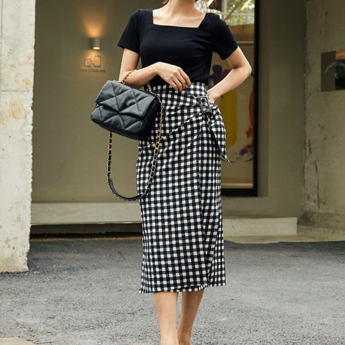 ギンガムチェック柄のラップスカートで、洗練されたスタイルを手に入れてください。