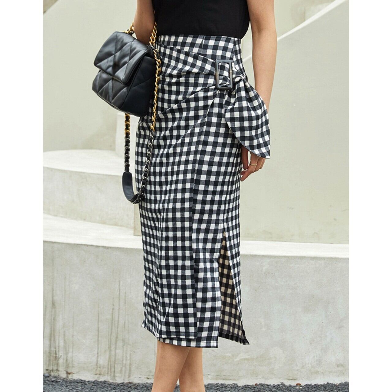 ギンガムチェック×ハイウエスト ラップスカート 00420