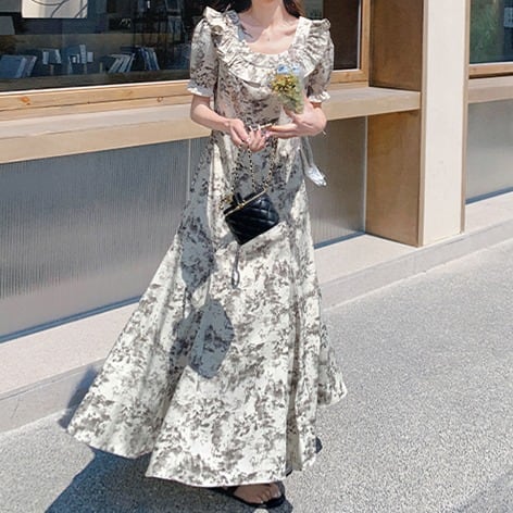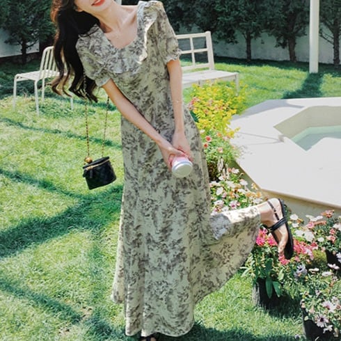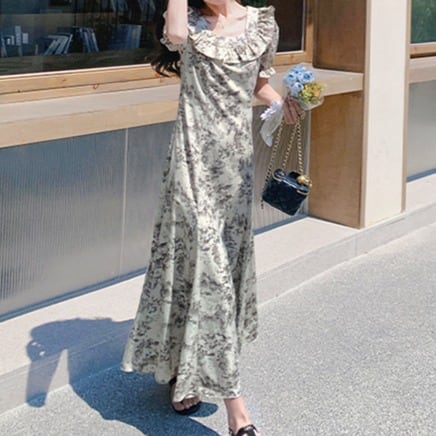 花柄 フィッシュテール マキシ丈ワンピース 00457