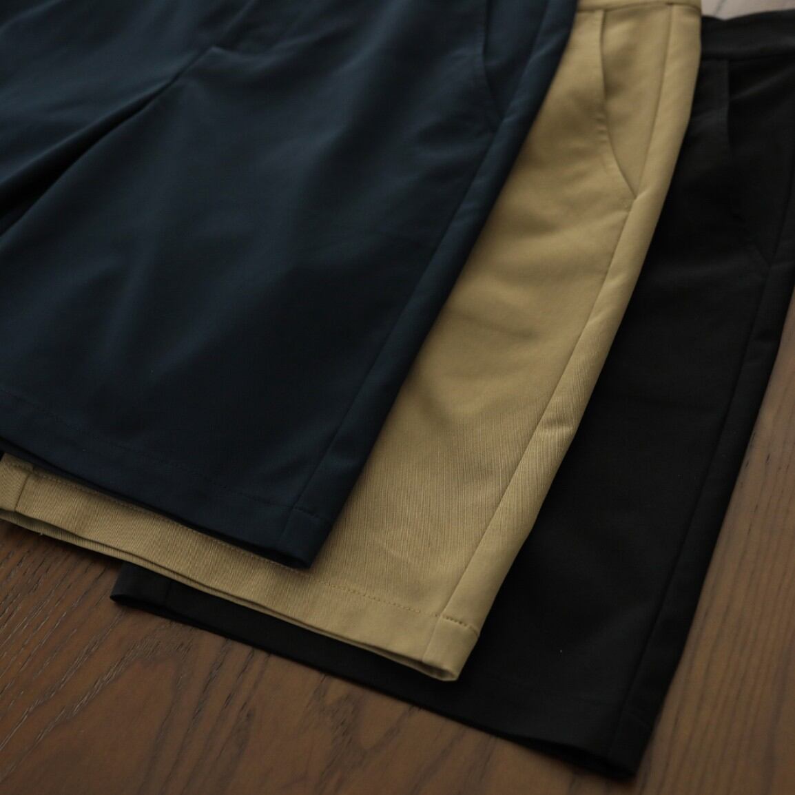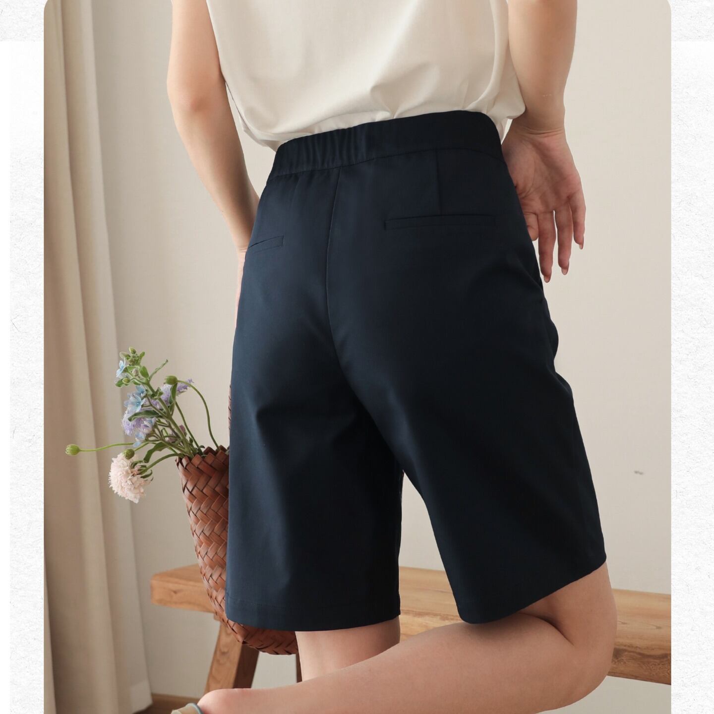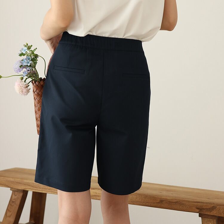 セミワイドなシルエットが上品さを引き立ててくれるハーフパンツです。