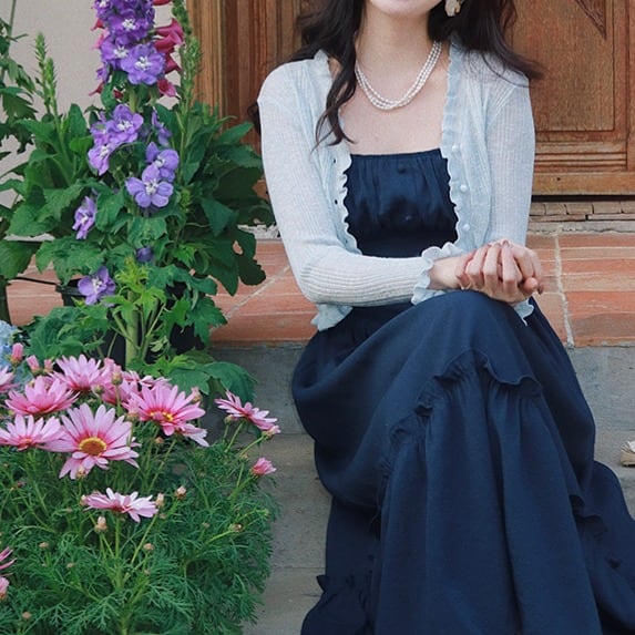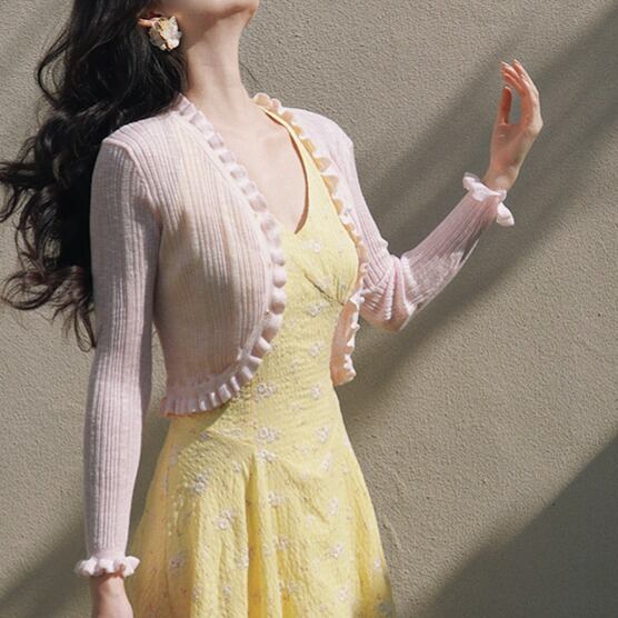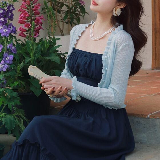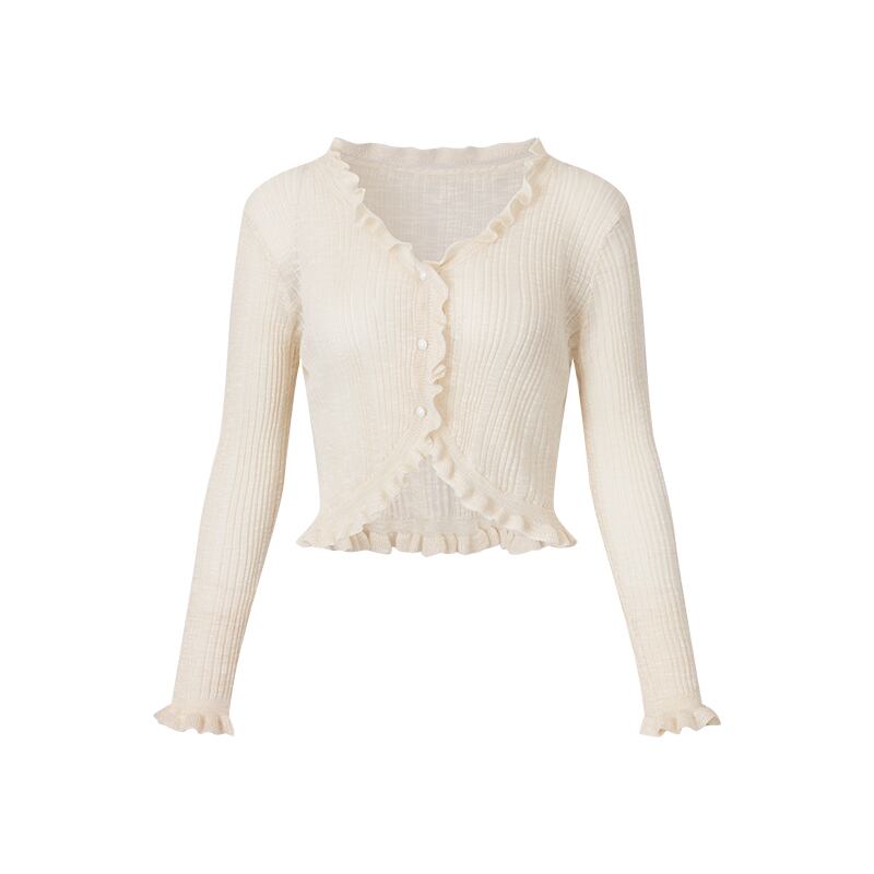 フリルが上品な薄手のカーディガンです。