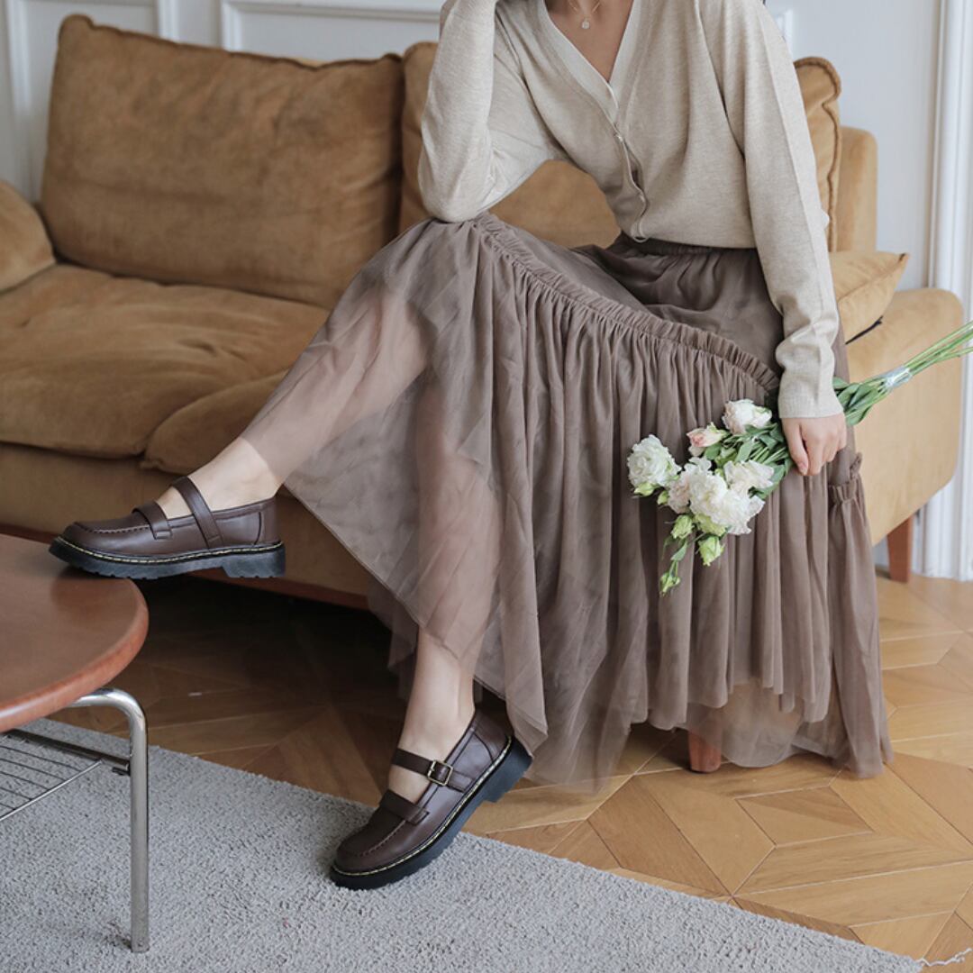 Aライン ミモレ丈 ギャザー入り チュールスカート 00528