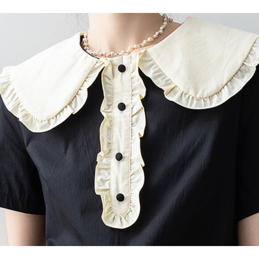ブラウス風 フロントボタン フリルカラー ワンピース 00532