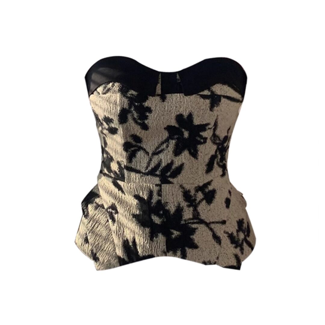 コルセットトップスのボタニカル柄が、着こなしに洗練されたアクセントを添えます。