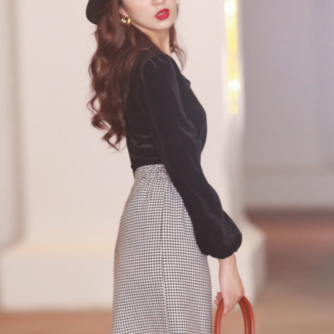 ベルベット調 バルーンスリーブ スクエアネックトップス 00554