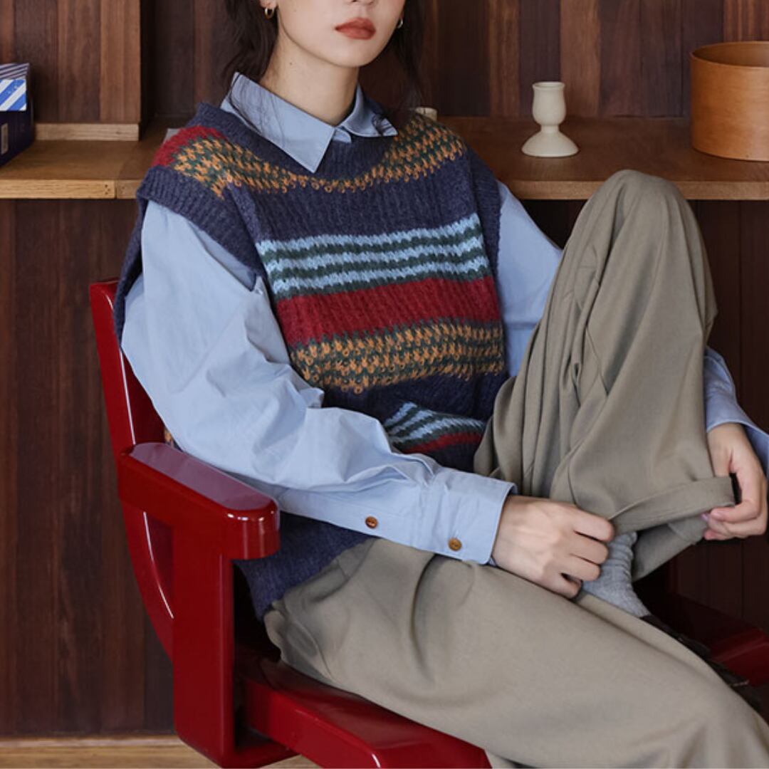 ボーダー柄 クルーネック ニットベスト 00561