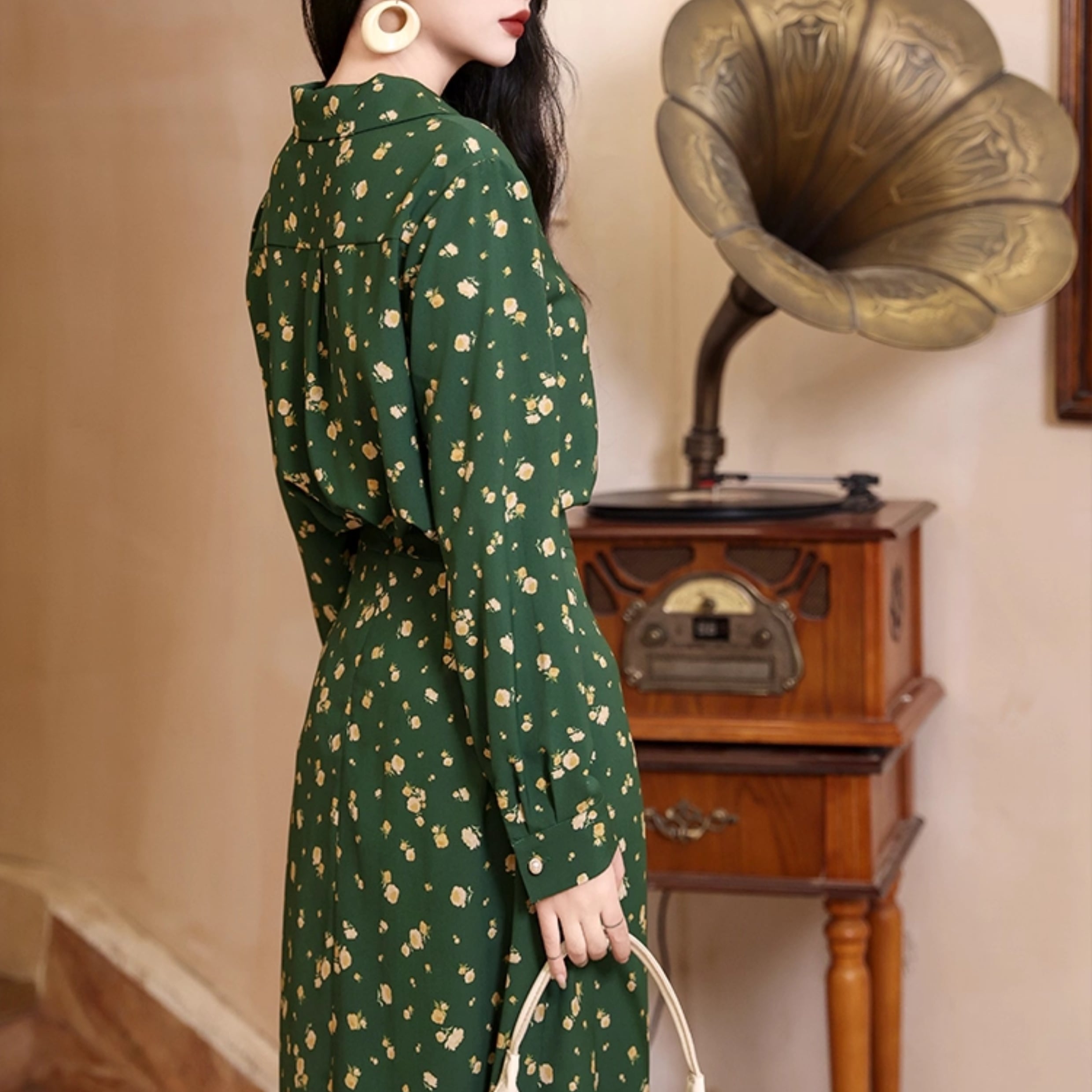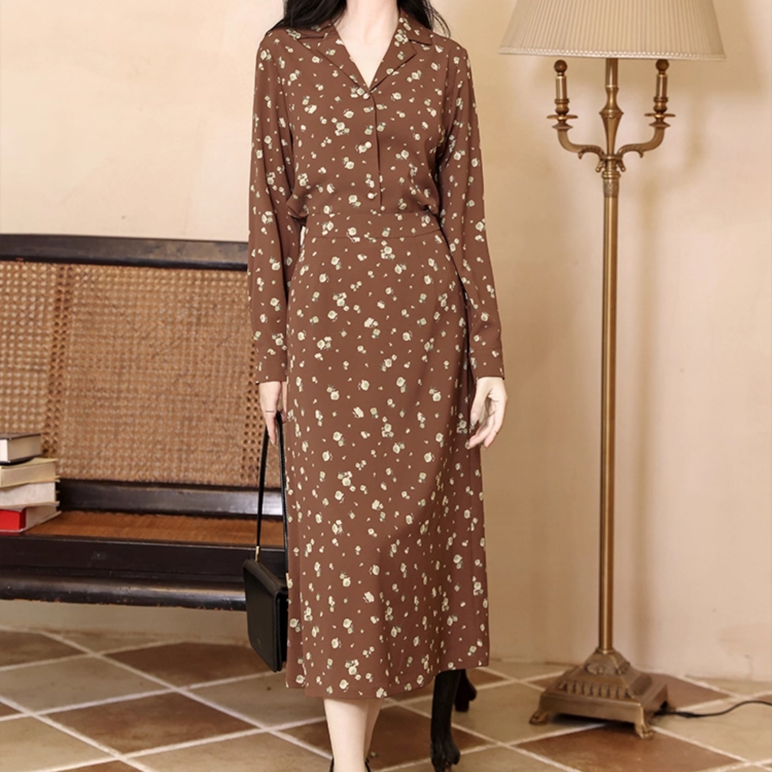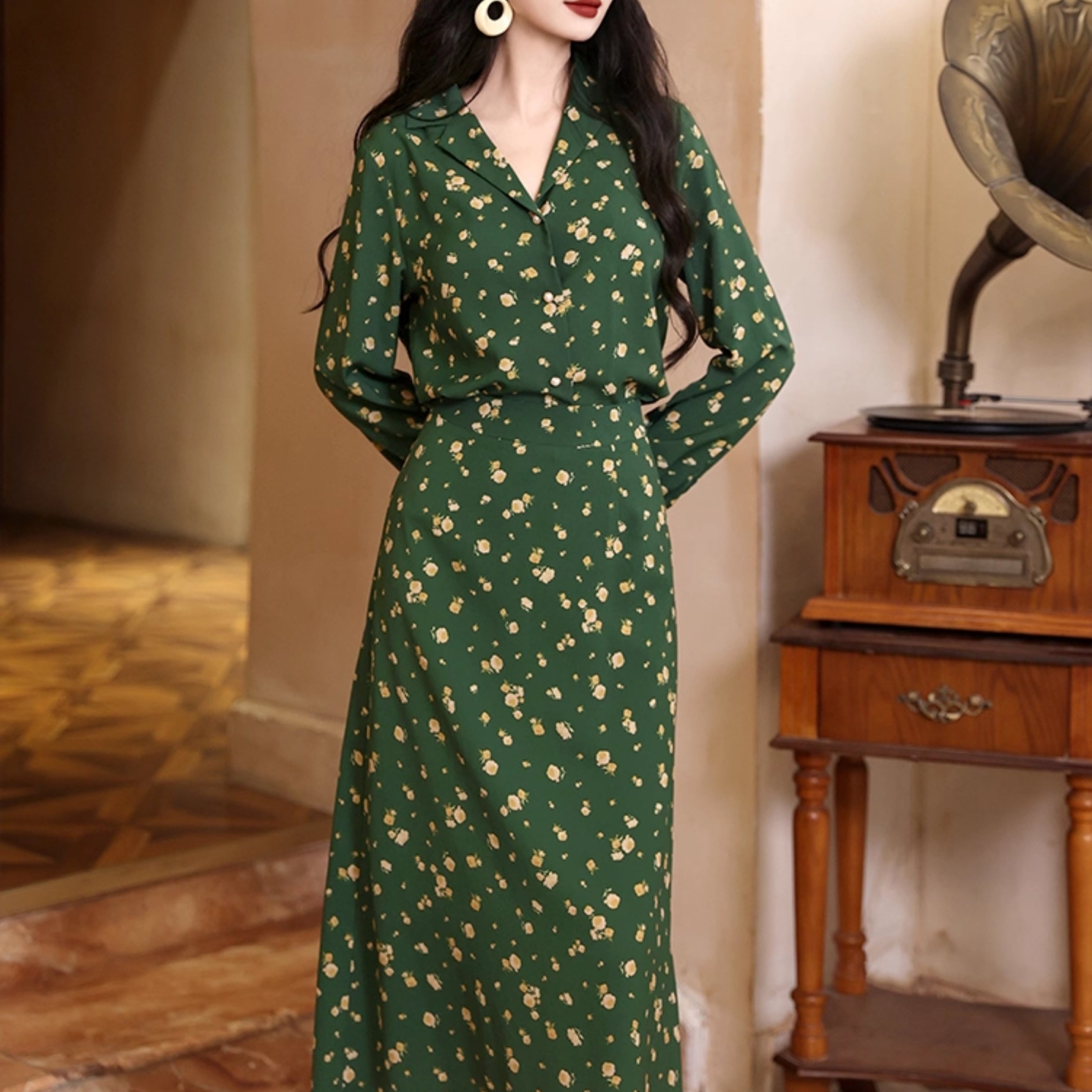 花柄 ロングスリーブシャツ&タイトスカート セットアップ 00480