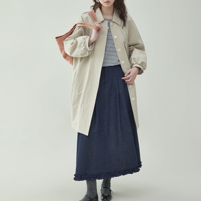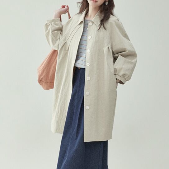 ショルダープリーツデザイン ミドル丈コート 00413