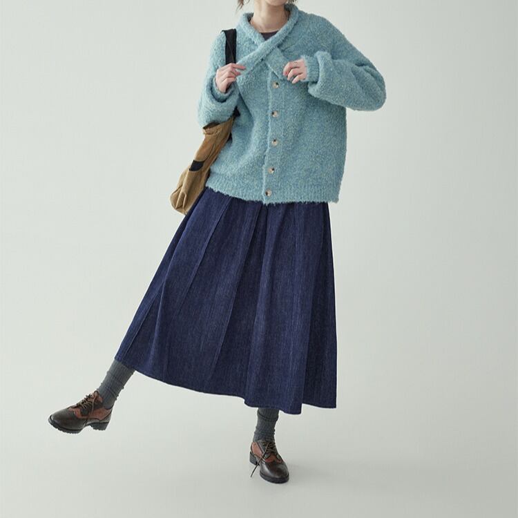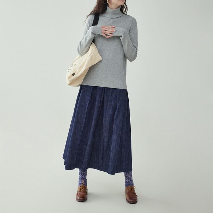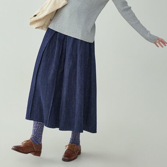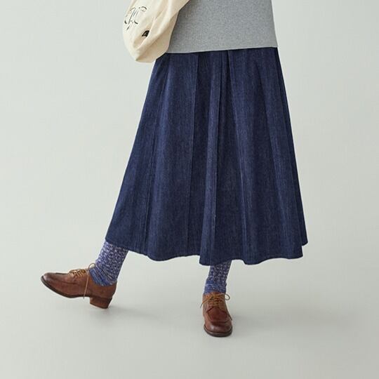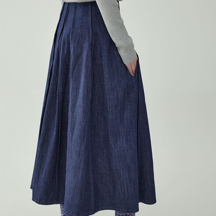 ミドル丈 プリーツデニムスカート 00414