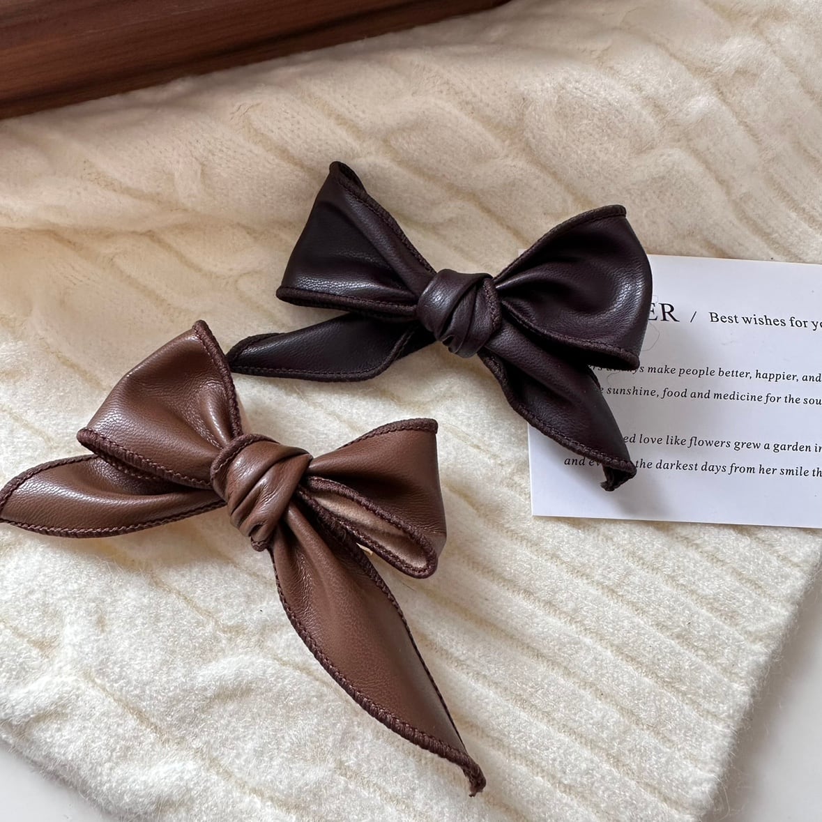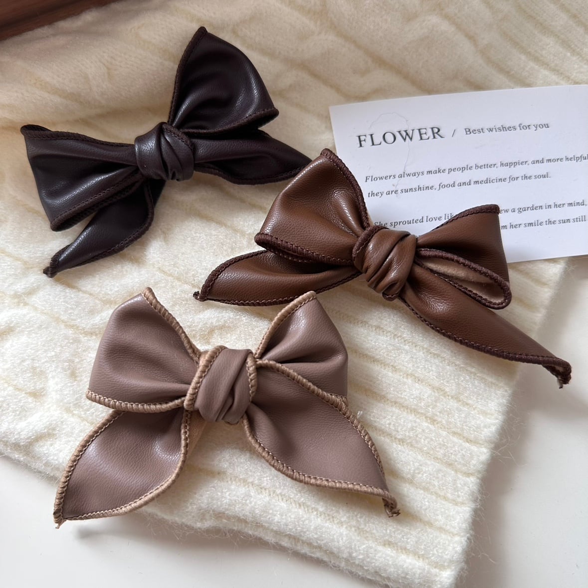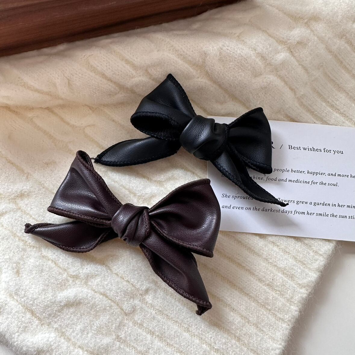 フェイクレザー リボン ヘアクリップ 00580