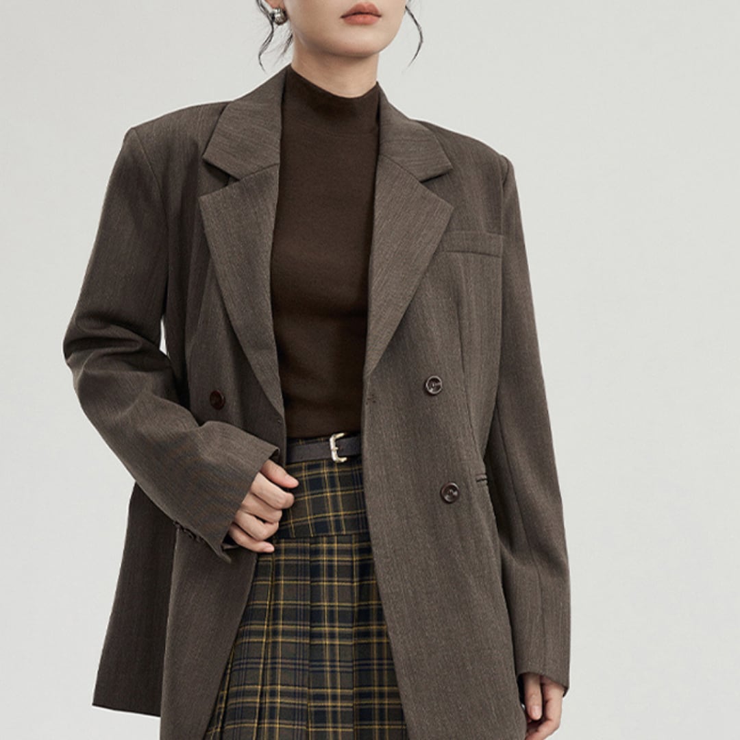 ダブルブレストのデザインが、クラシカルで上品な雰囲気を演出します。
