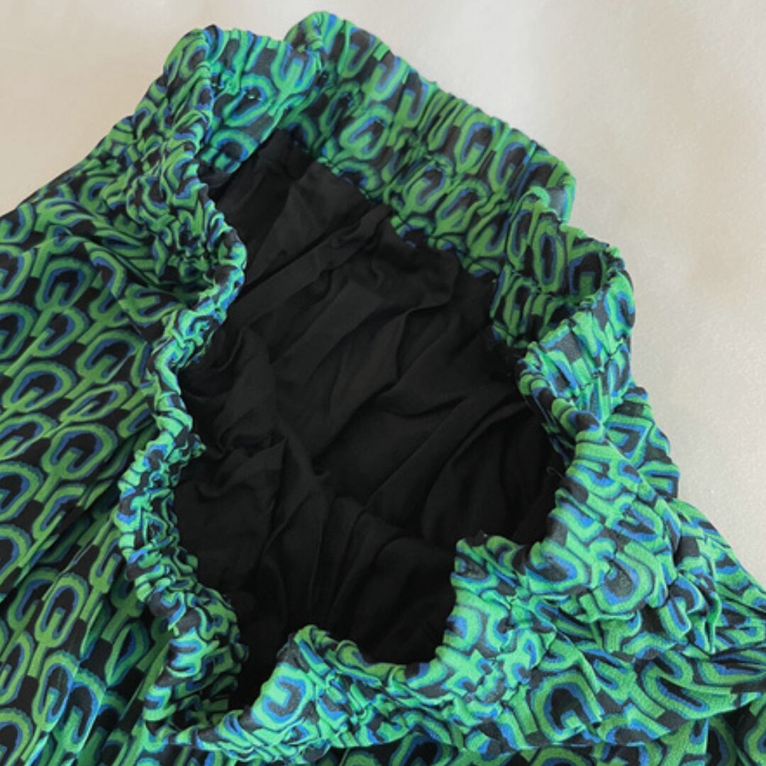 プリーツ加工が施されており、動きのあるシルエットが魅力です。