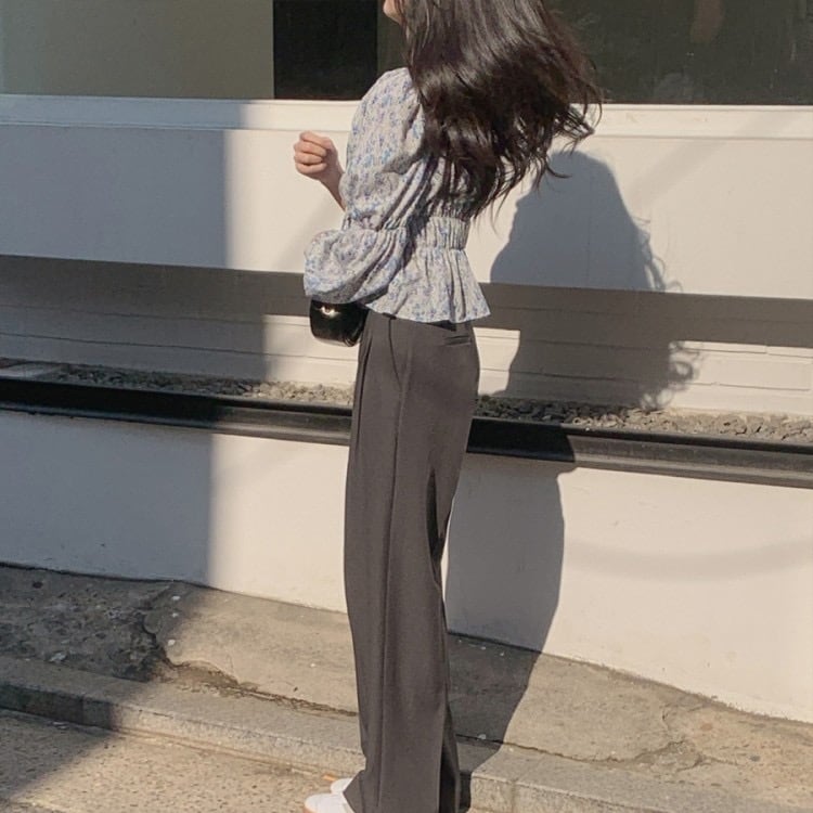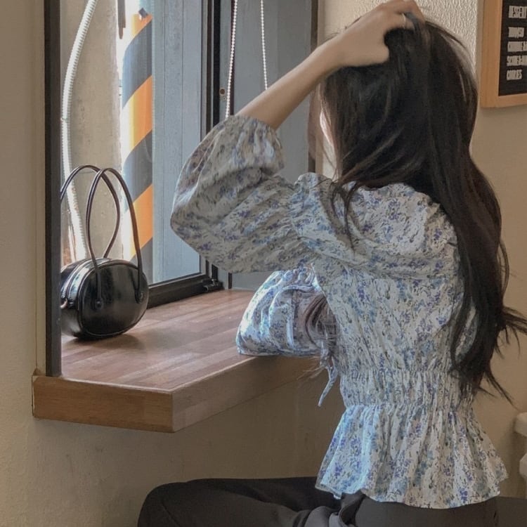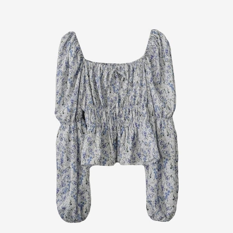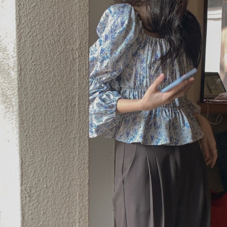 花柄 ギャザー ロングスリーブ ペプラム トップス 00615