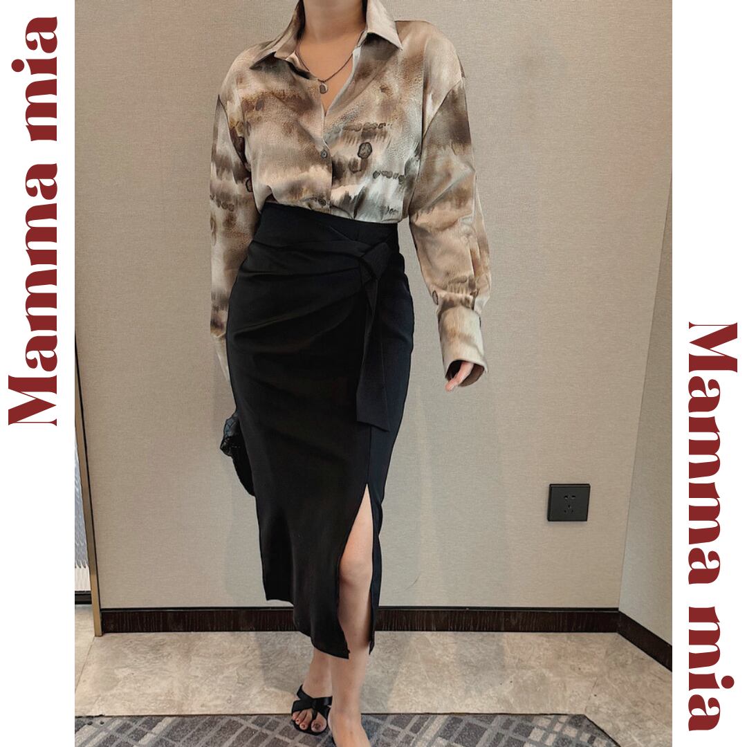 ウエストリボン ラップ風スカート 00591