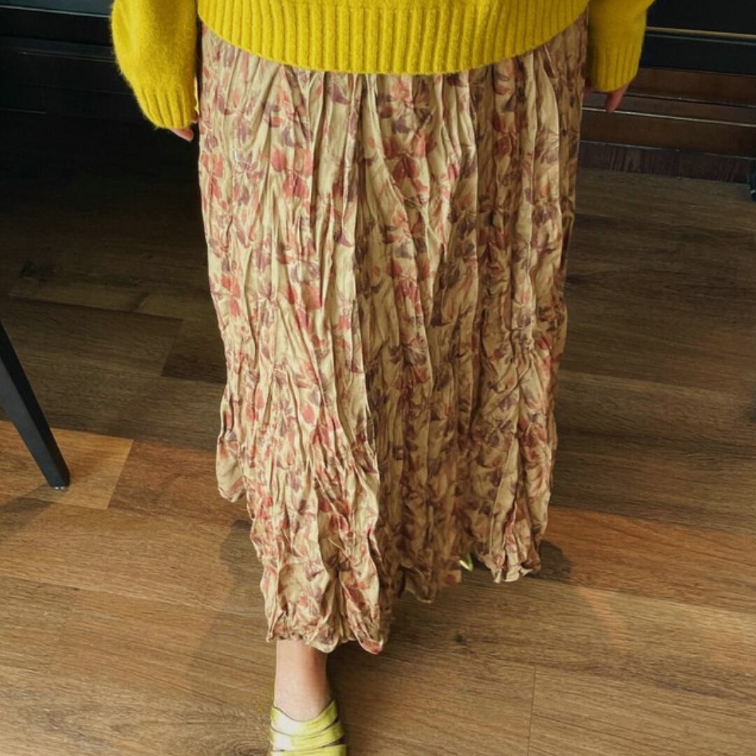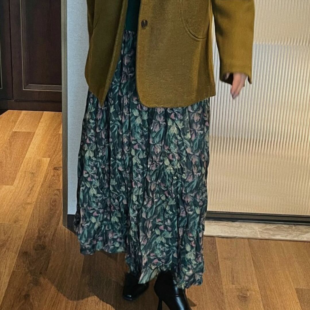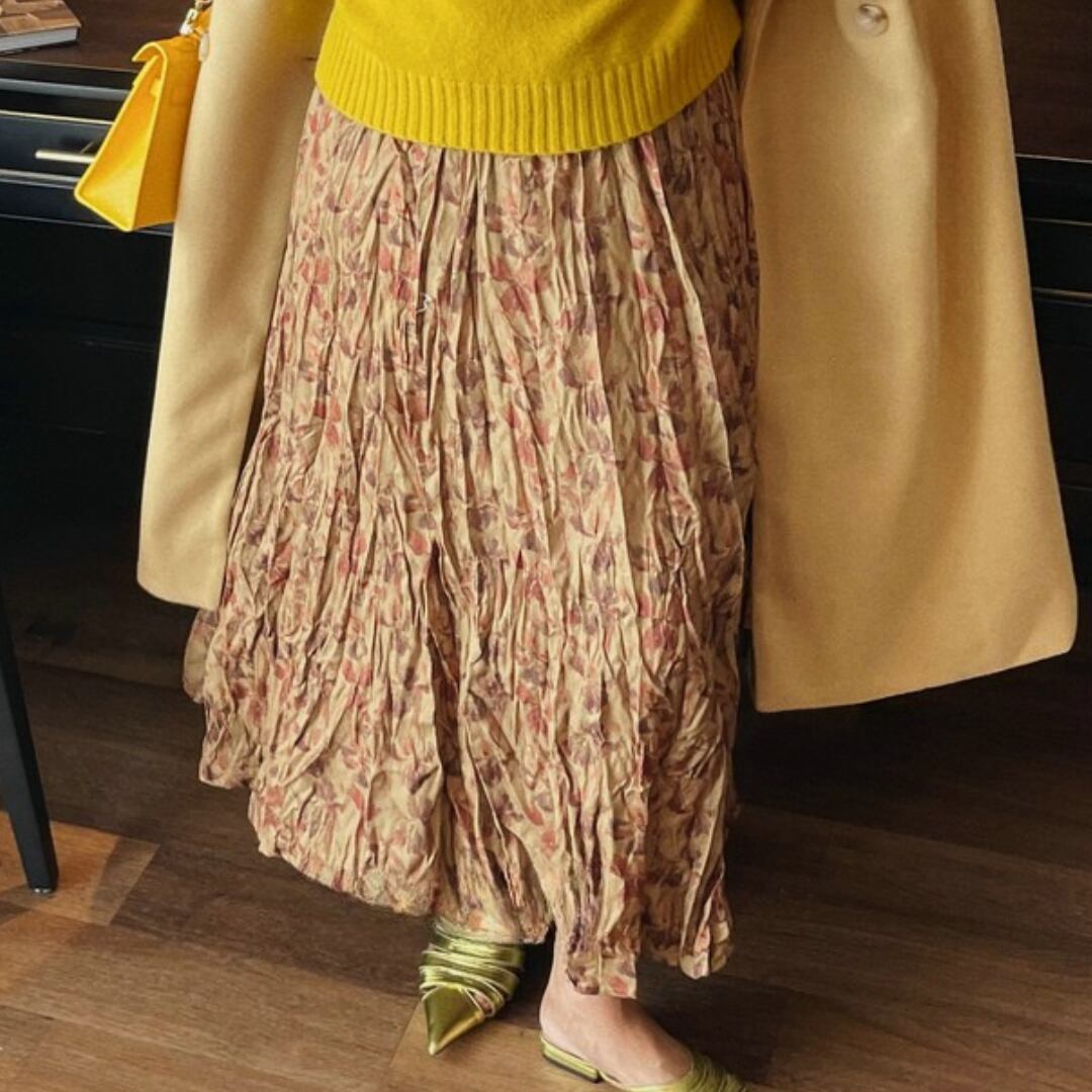 動きに合わせて揺れるフレアシルエットが、エレガントな雰囲気を醸し出します。