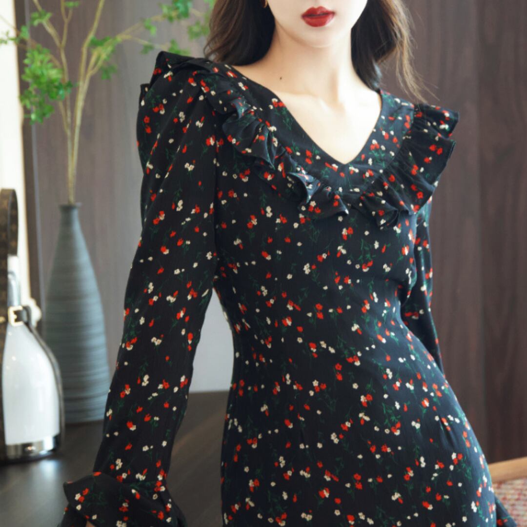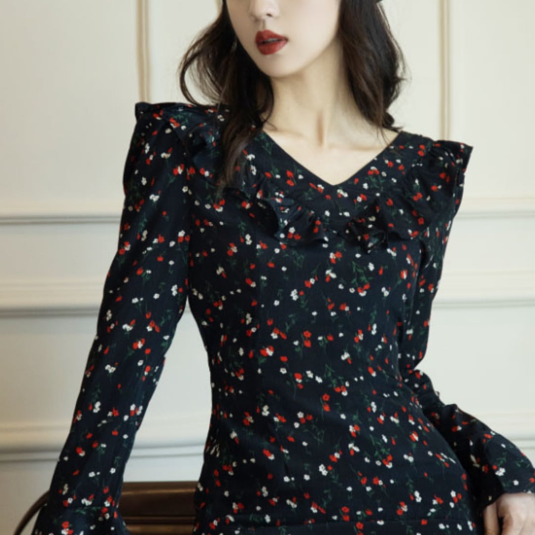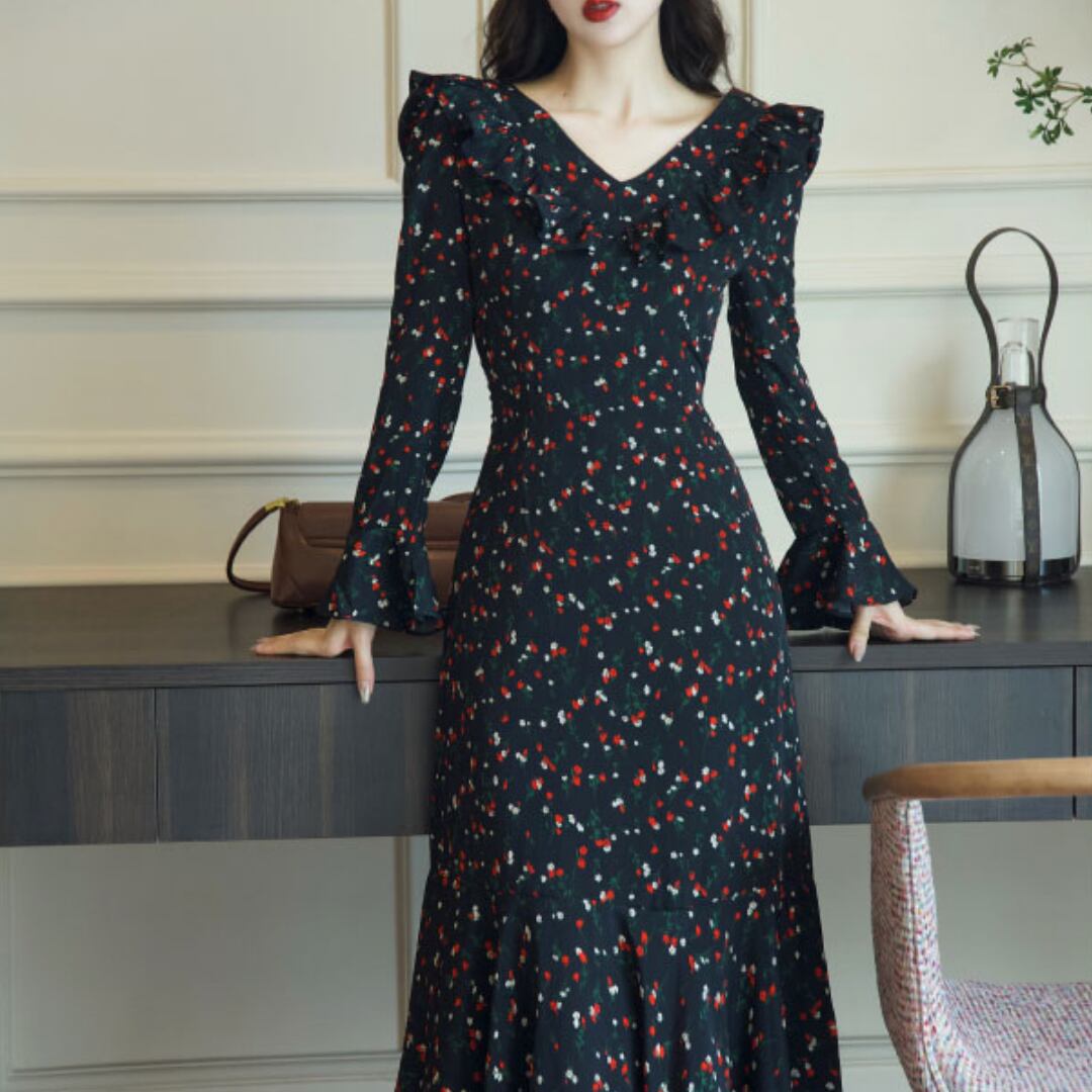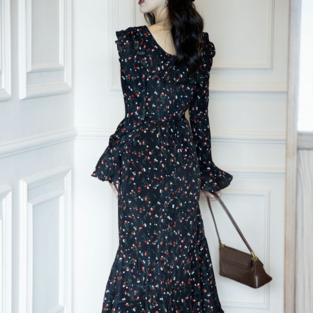 ゆうひな フリルショルダー 長袖 マーメイド ワンピース 00621