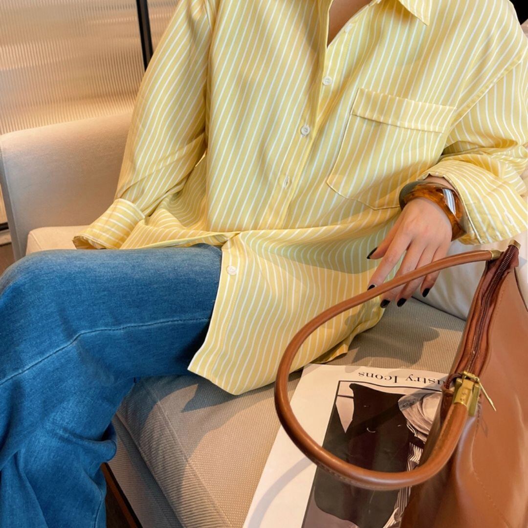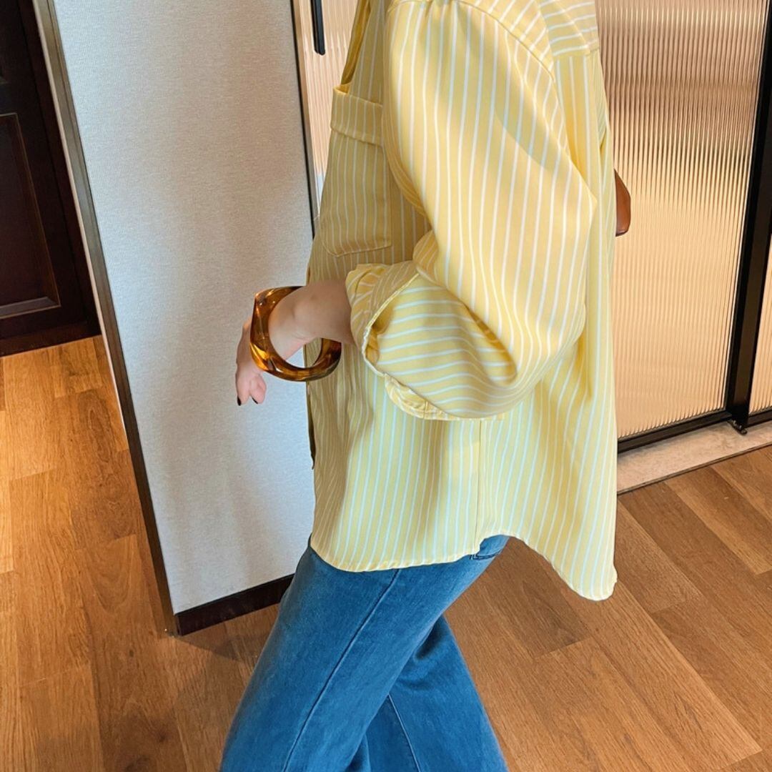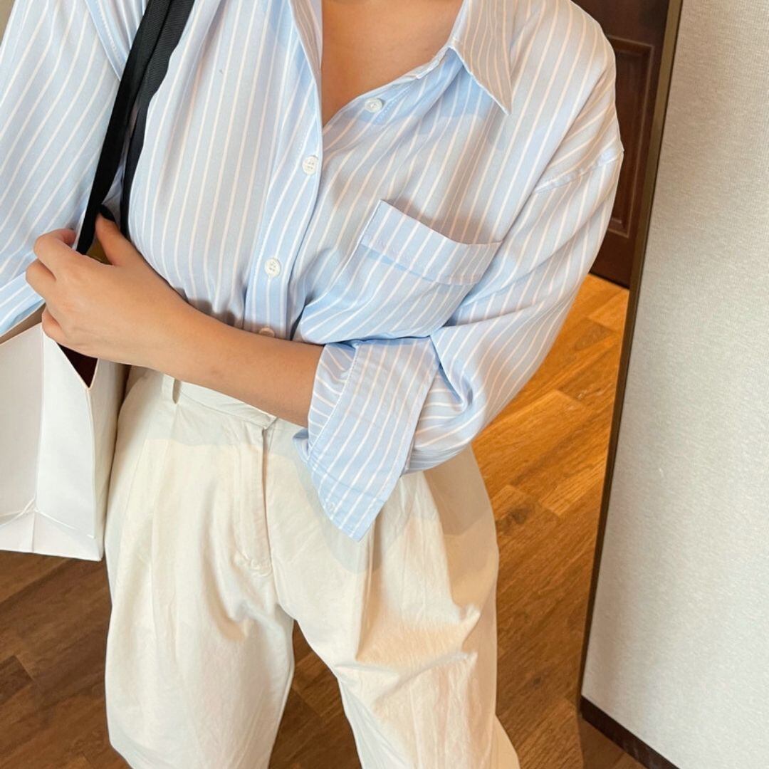 ストライプ柄 胸ポケット 長袖 ドロップショルダー シャツ 00609