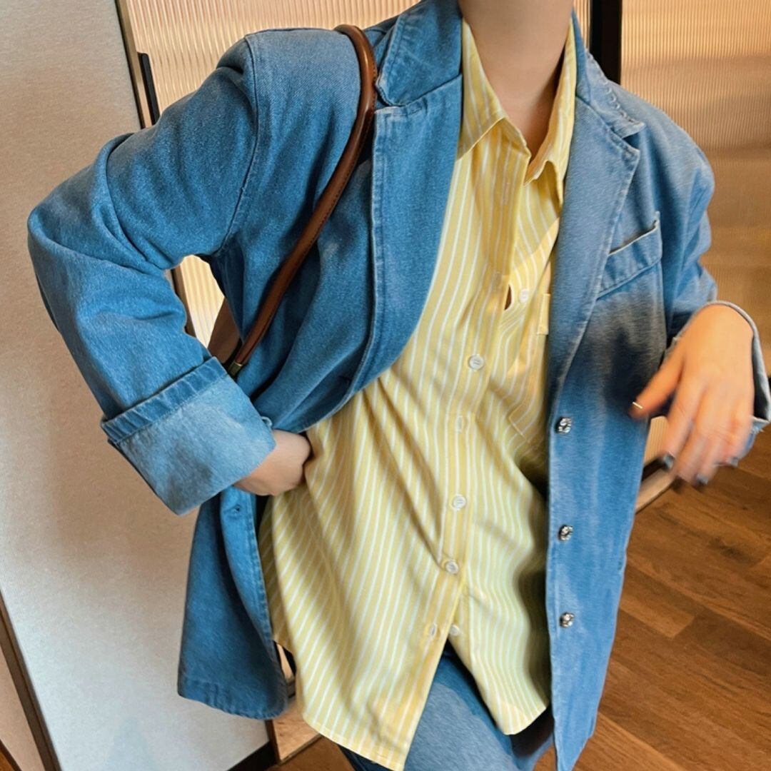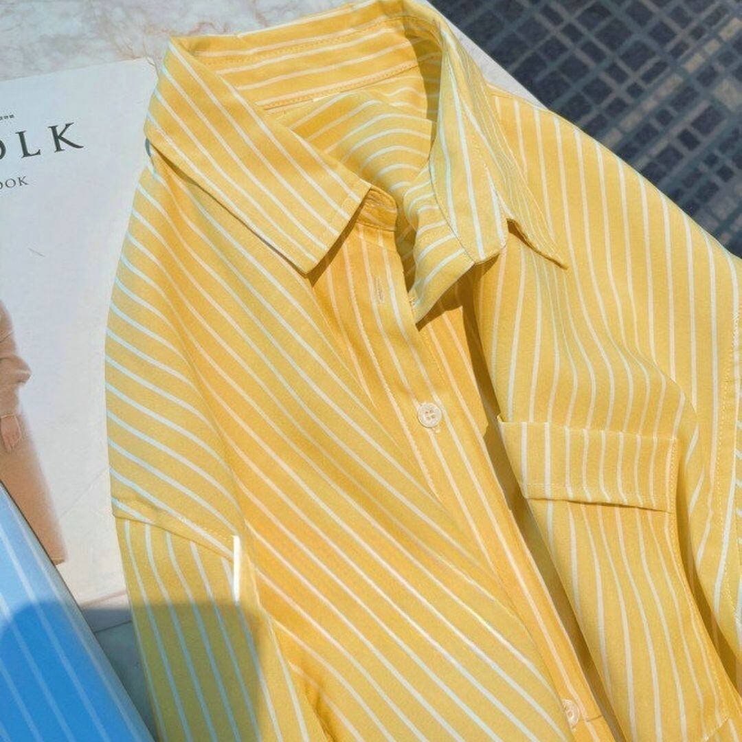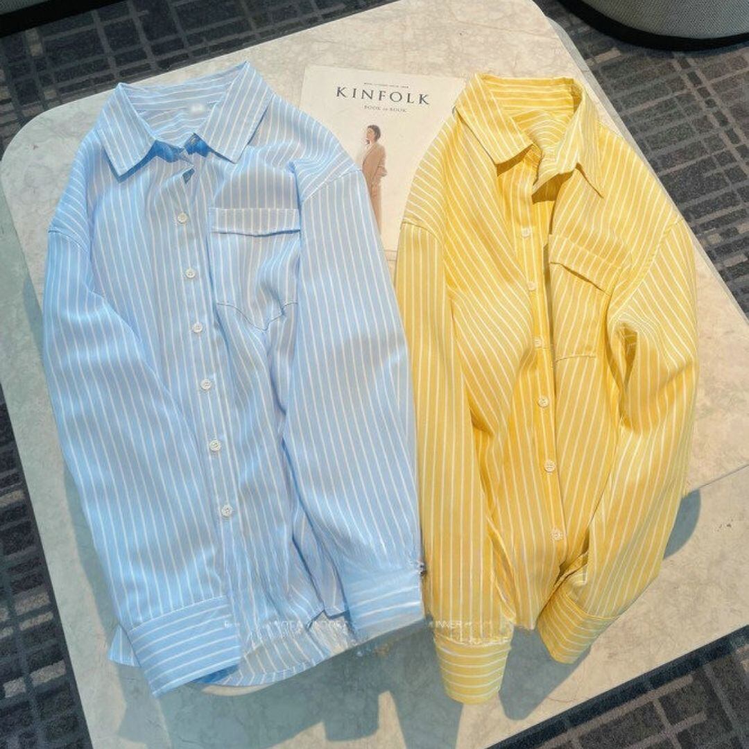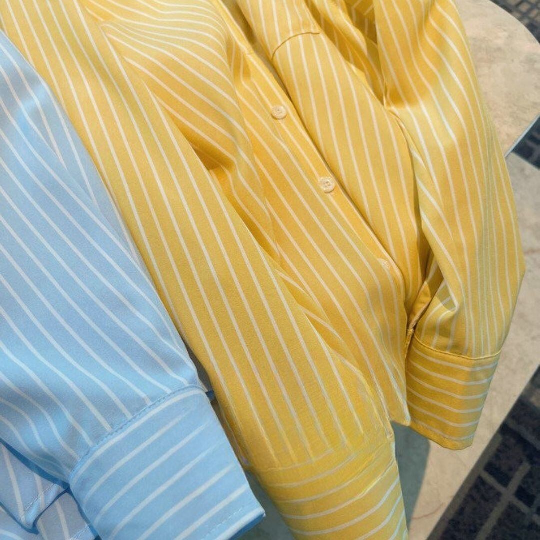 ストライプ柄 胸ポケット 長袖 ドロップショルダー シャツ 00609