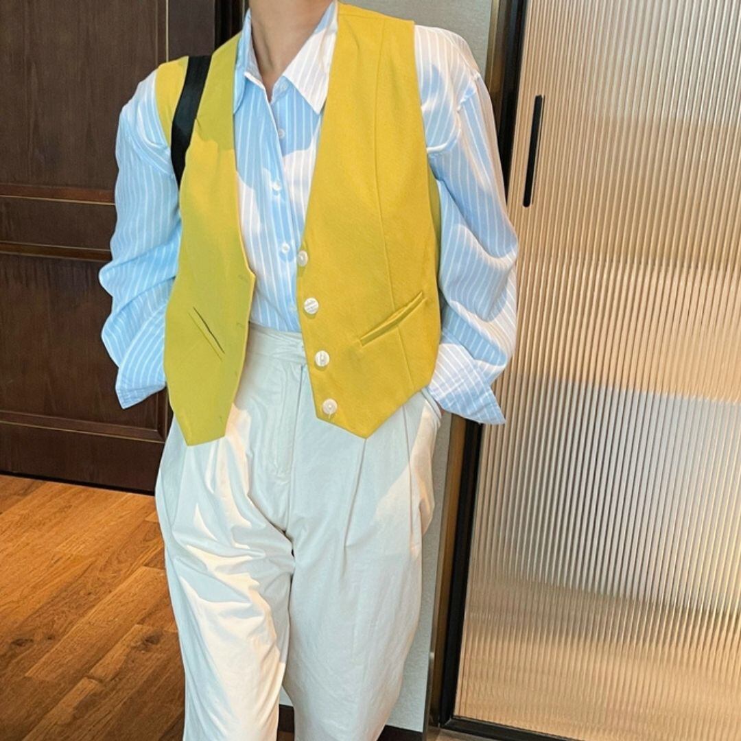ストライプが印象的なシャツ。