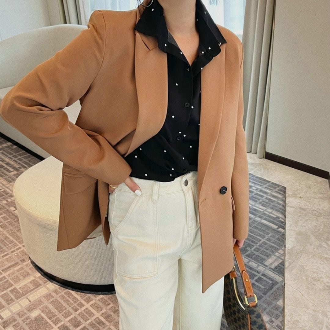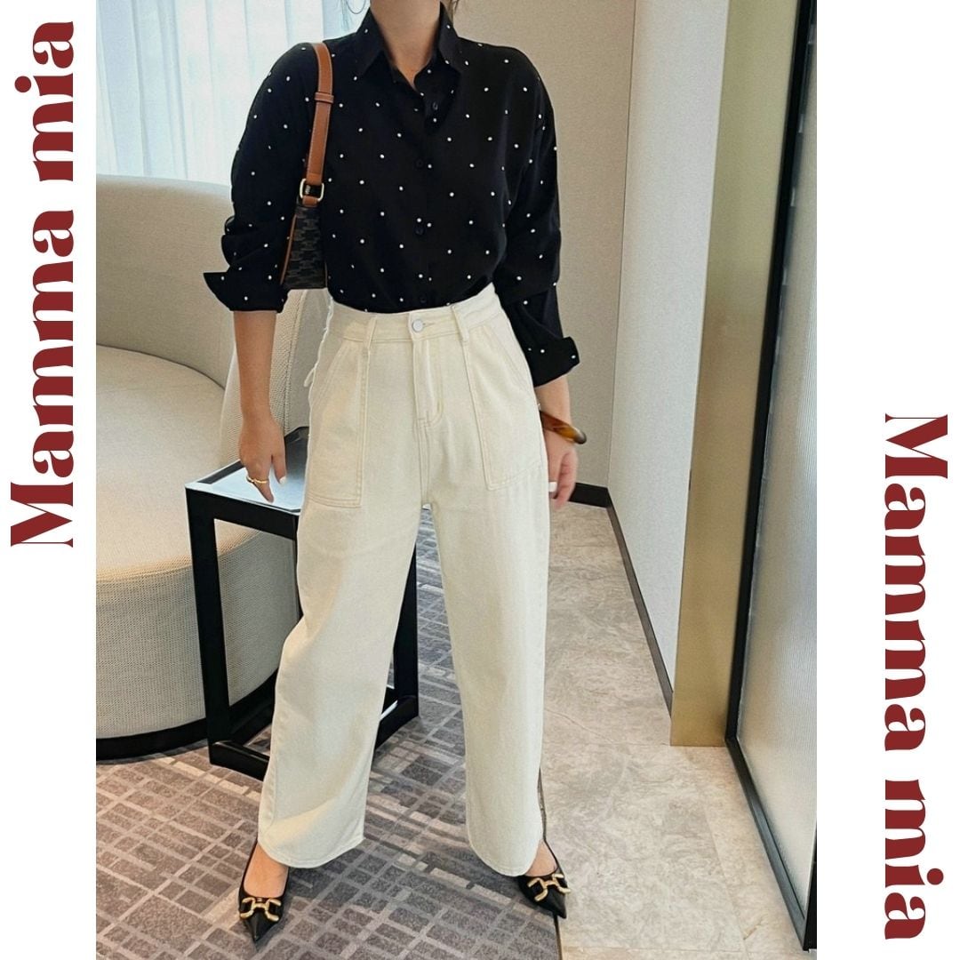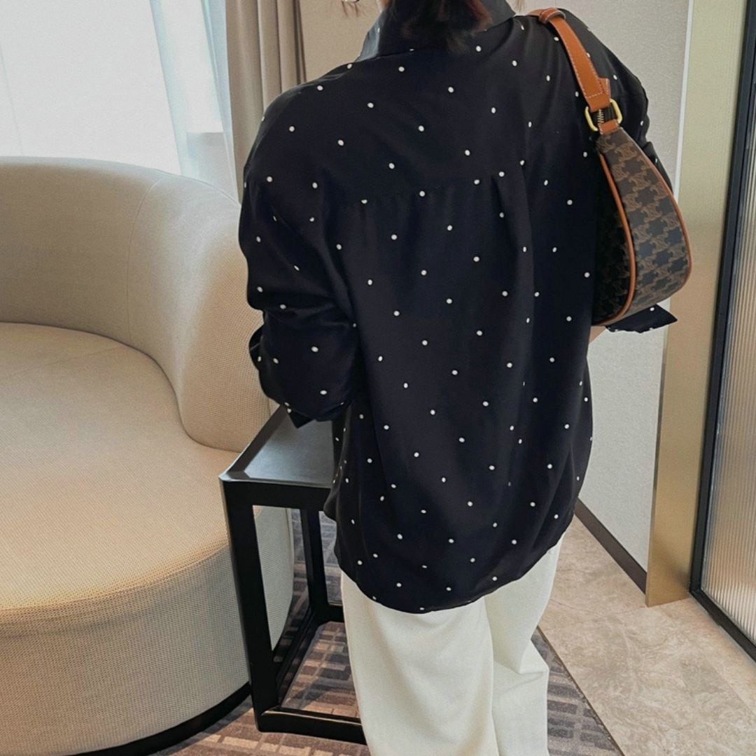 シンプルな着こなしに遊び心をプラスしてくれるドット柄シャツ。