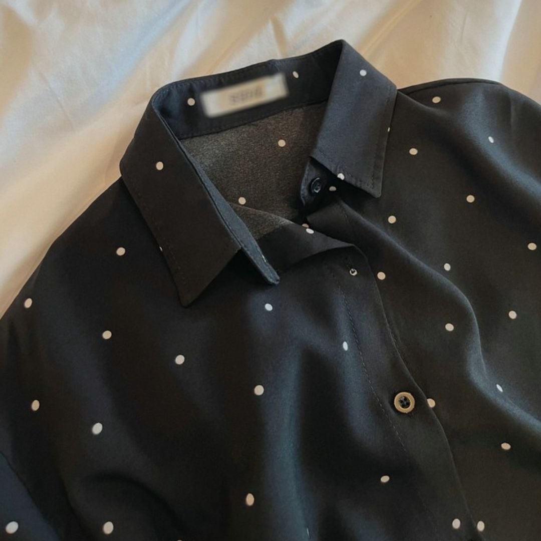 7あみさん ドット柄 ボタンフロント 長袖 シャツ 00610
