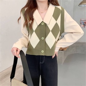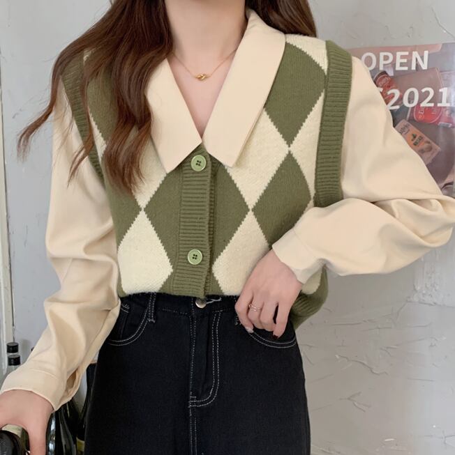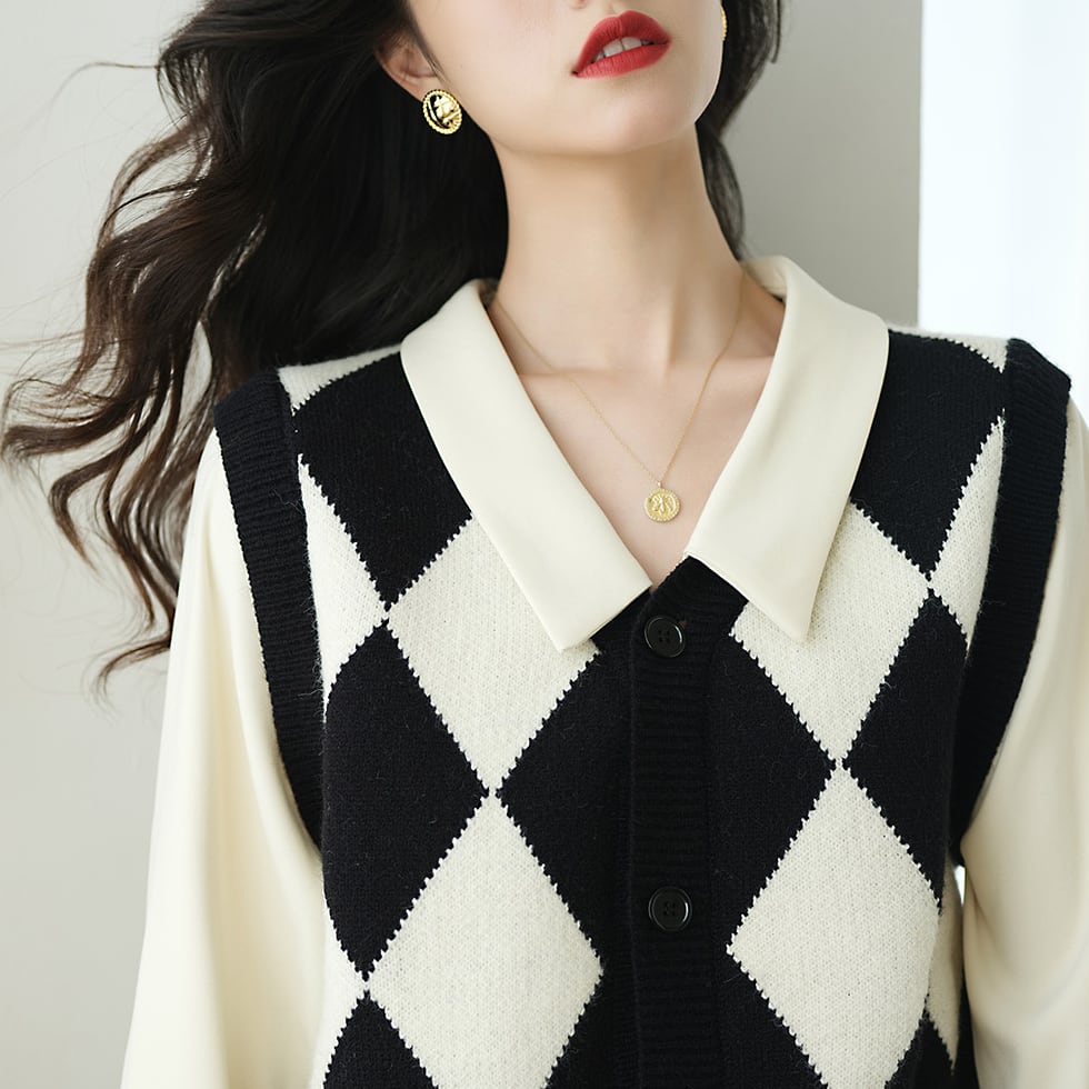 ダイヤ柄ベスト風 フェイクヤードブラウス 00012