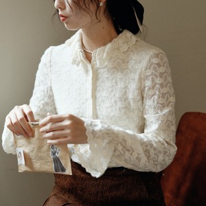 レース素材フリルカラー&スリーブブラウス 00045