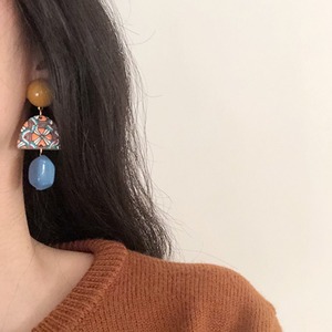 半円形とドロップ型の組み合わせが特徴的なピアス/イヤリングです。