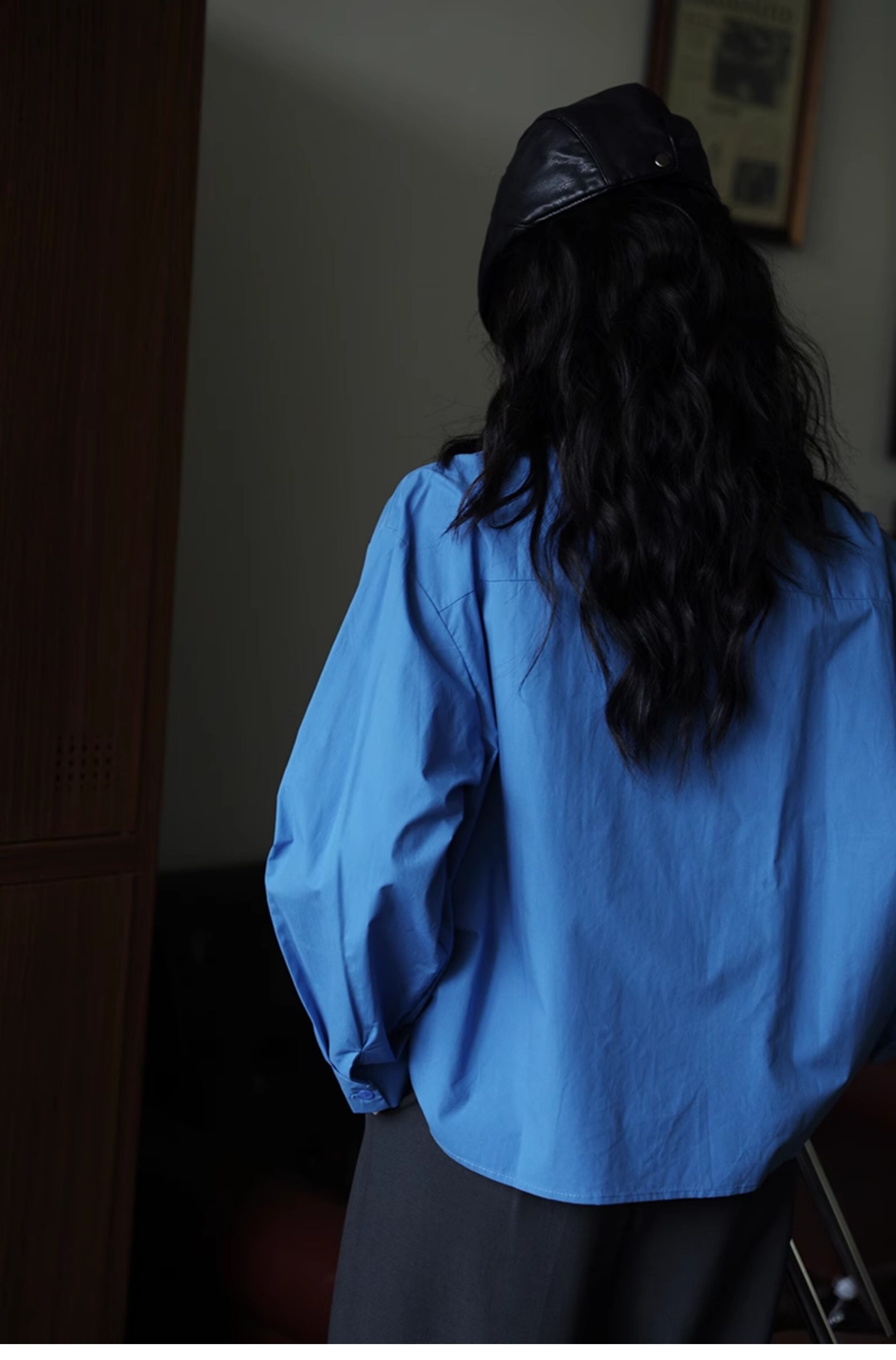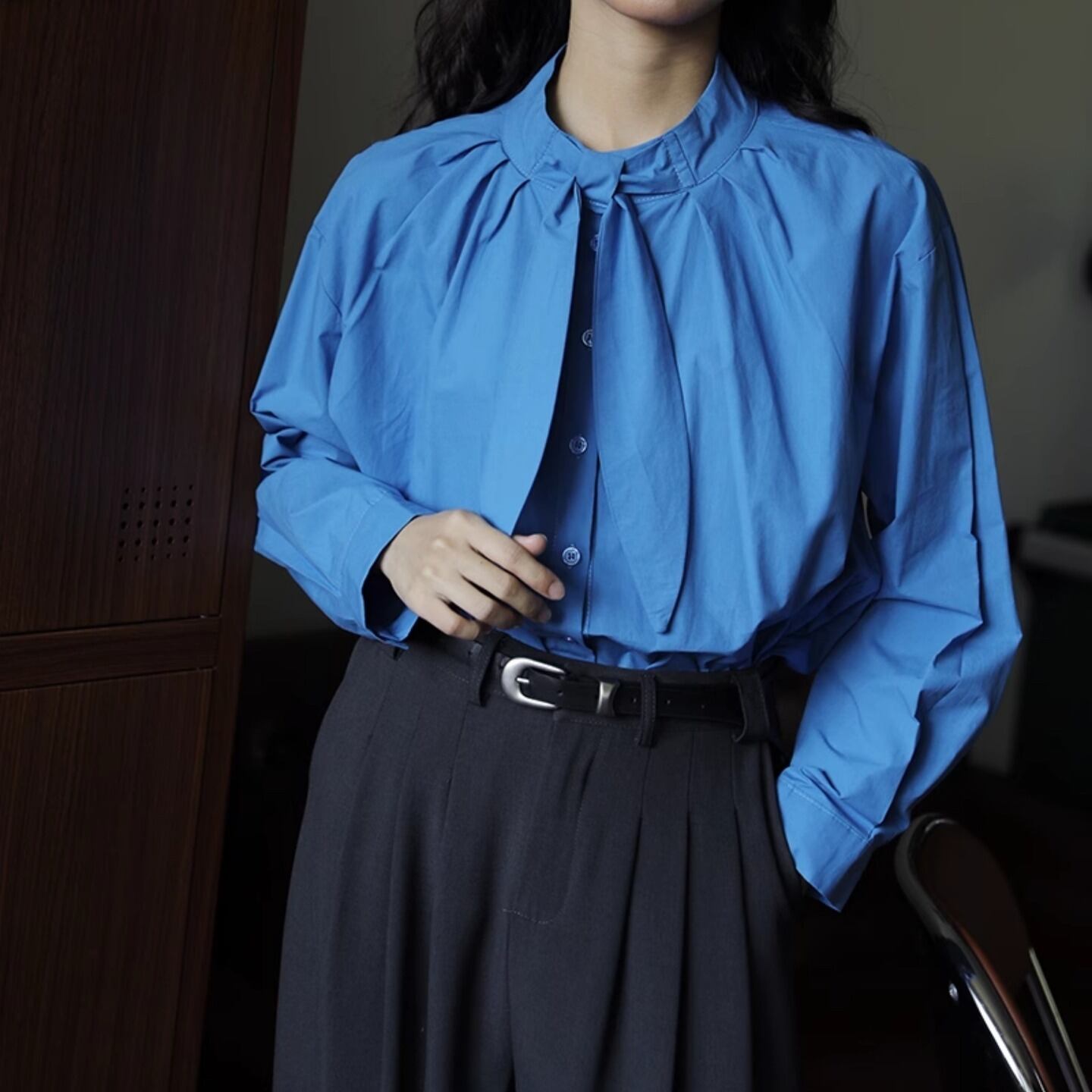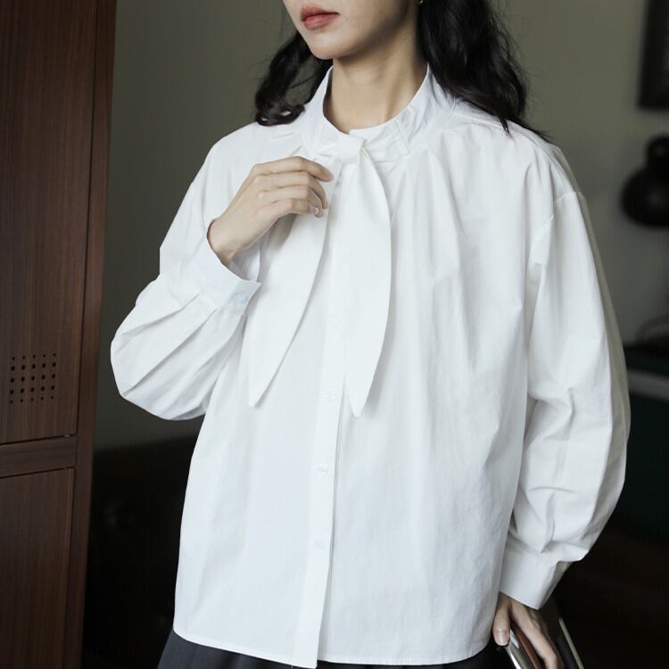 ボックスシルエット スタンドカラー ボウタイブラウス 00081