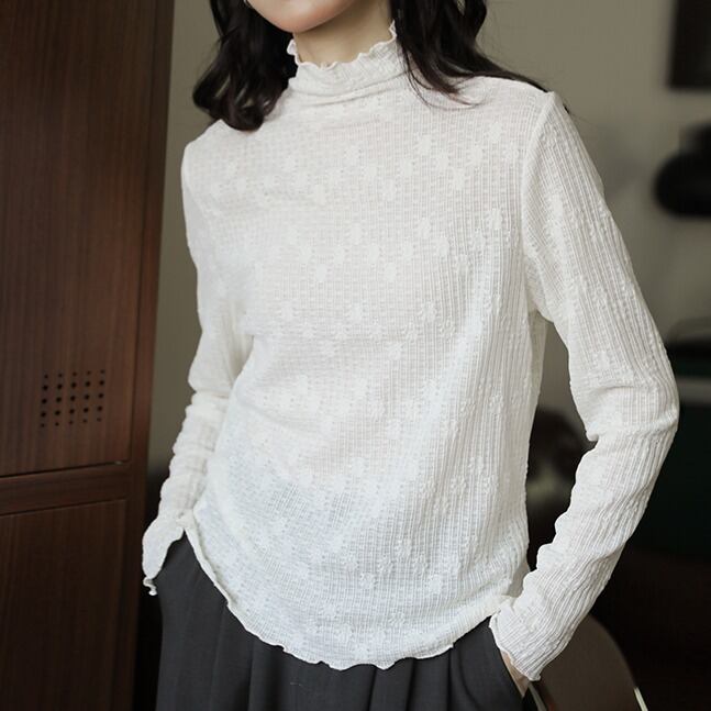 柔らかな素材感とスタイリッシュなハイネックデザインが魅力のニットトップスです。